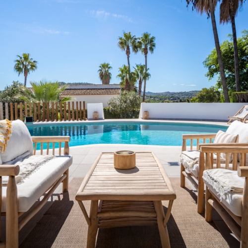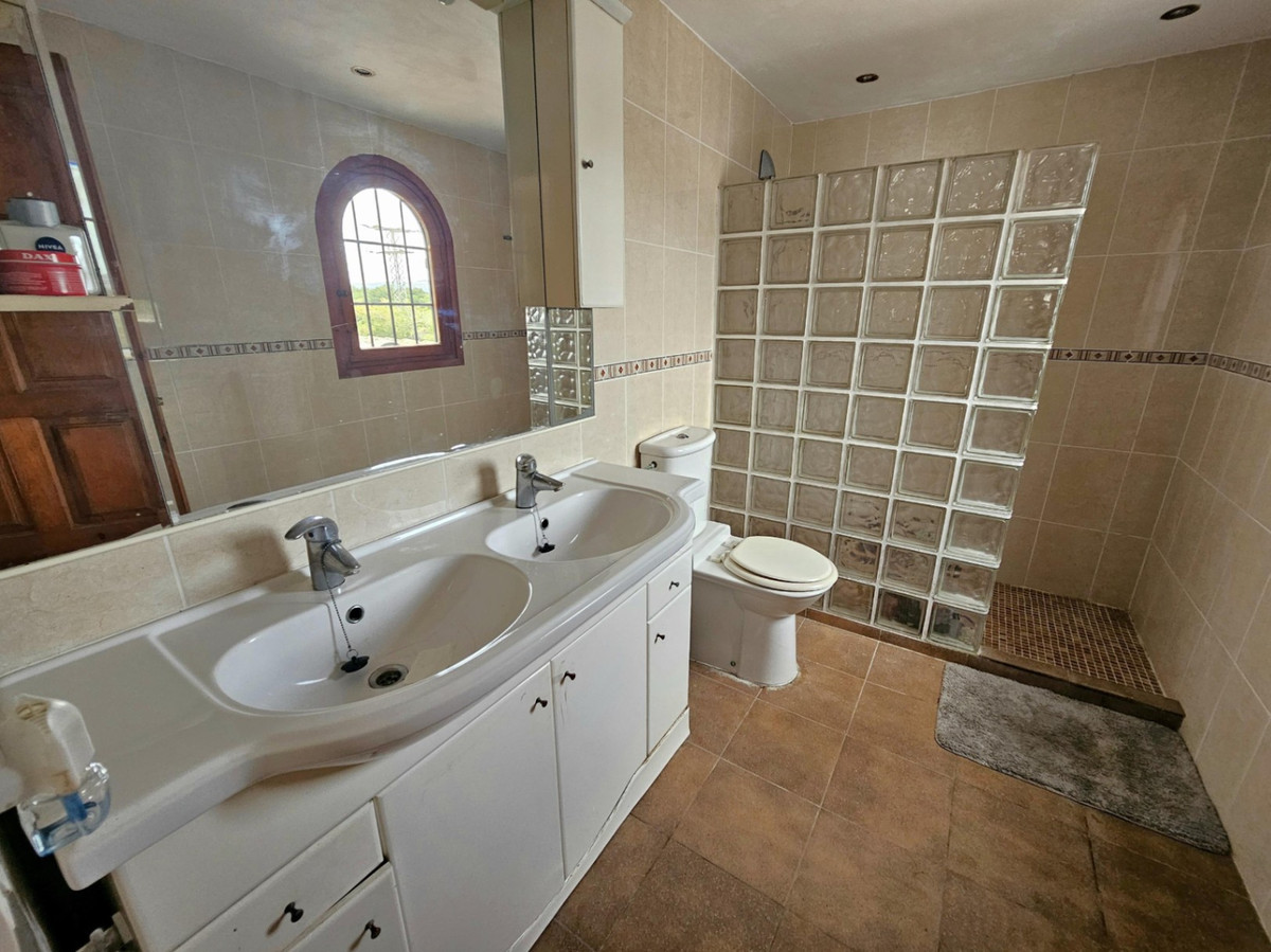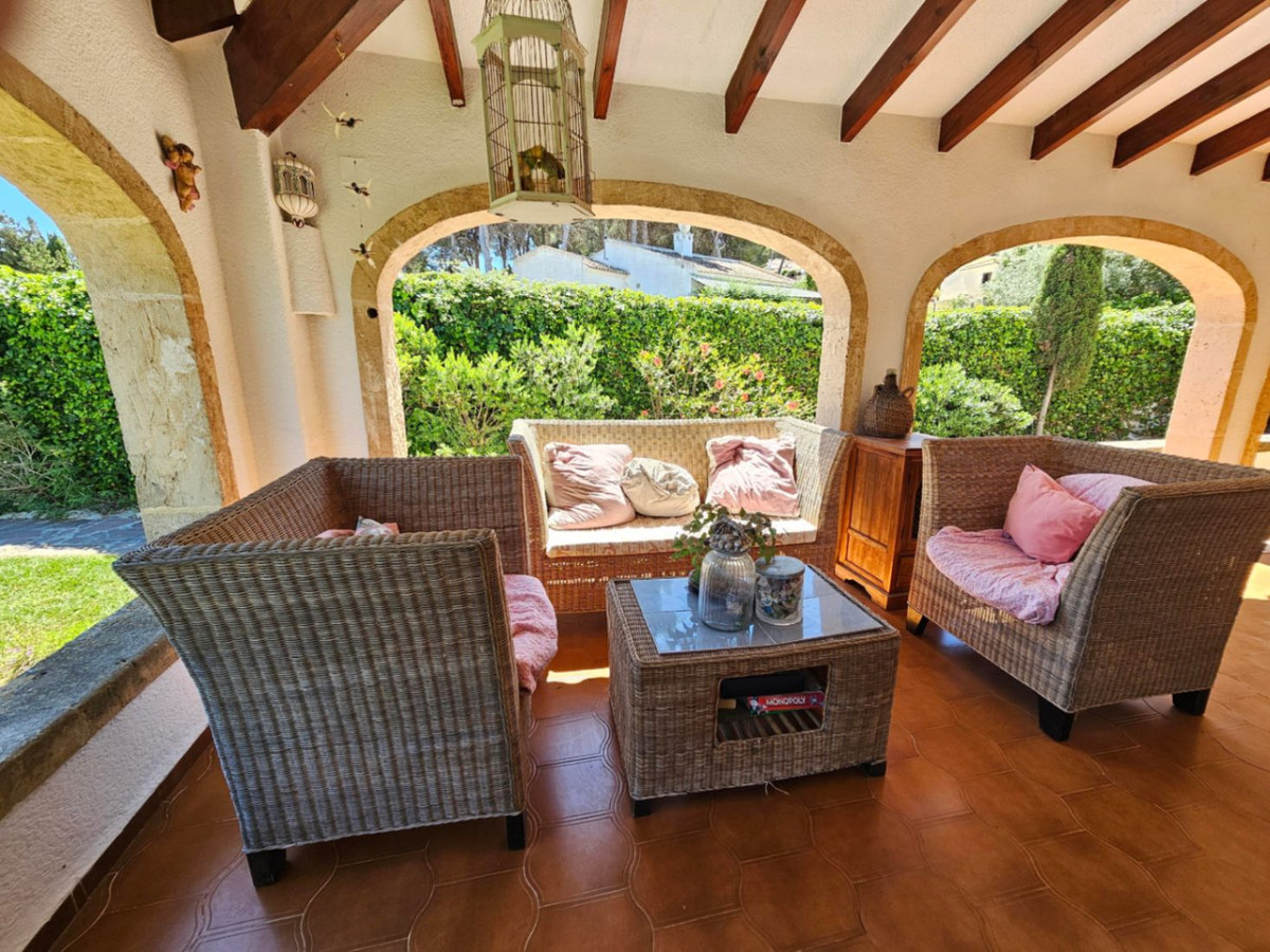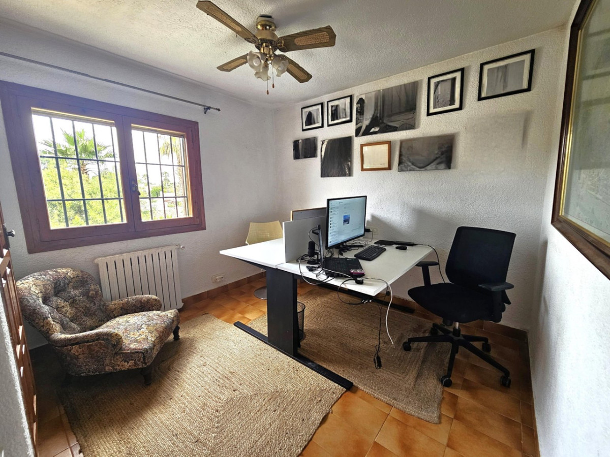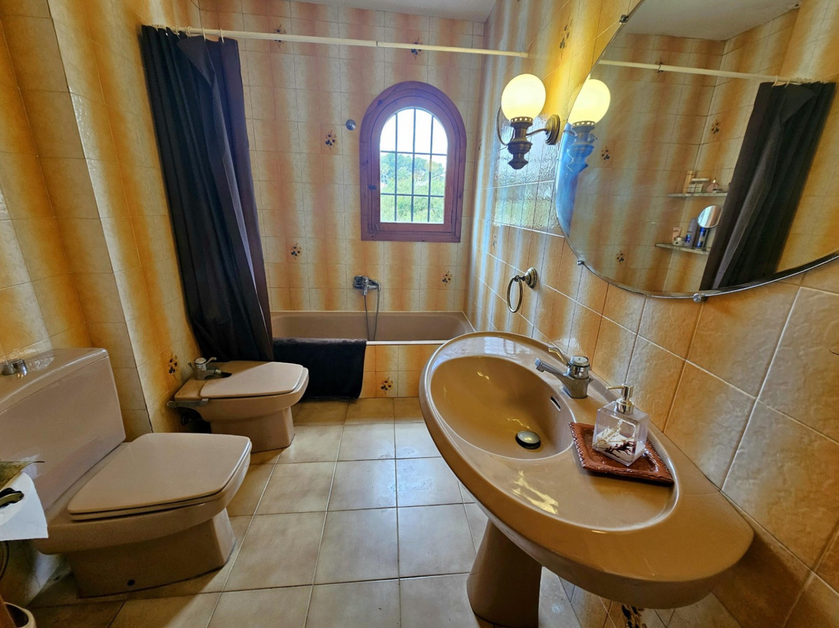 We present to you exclusively this beautiful traditional Villa in Jávea. Upon arriving at the property, we find a private parking area with sufficient space for four cars. Entering the Villa, we are welcomed by a hall that leads to a very spacious living-dining room, with the dining area featuring double-height ceilings. Passing through a beautiful Tosca stone archway, we enter the living room, which has a lovely wood-burning fireplace, also made of Tosca stone, making the space very cozy. The kitchen is a good size, with room for a table and chairs, and is equipped with many natural wood cabinets, providing plenty of storage space, along with a laundry room that makes daily life much easier. Additionally, on this floor, we have a full bathroom. On the upper floor, we find four double bedrooms, with built-in wardrobes and three bathrooms, two of which are en suite, as well as a spacious terrace from the master bedroom, with open views and a glimpse of the sea. The lower floor, accessible from an interior door, features a living-dining room with a small open kitchen, two bedrooms, a fully renovated full bathroom equipped with a shower, and another room that is currently used as storage but could be converted into a gym or another bedroom. The exterior of the Villa is a perfect place to enjoy the good weather, admire the views of Montgó, refresh ourselves in the 10x5 pool, sunbathe on the grass, or enjoy the spacious L-shaped naya with beautiful Tosca stone arches, reading a book, having dinner with family or friends, or simply sitting back and relaxing with a glass of wine. The entire Villa is equipped with diesel heating, wooden windows on the upper part, and tilt-and-turn double-glazed windows on the lower part.