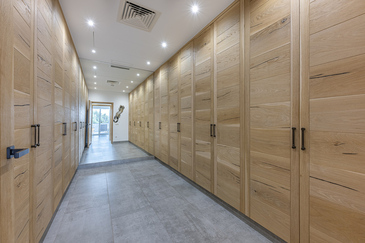 Inside, the villa feels bright, open and welcoming. The heart of the home is the spacious living room, designed with floor-to-ceiling glass doors that open directly onto the terrace, framing fantastic views of the sea and surrounding greenery. Natural light floods in from all angles, creating a warm and inviting atmosphere. The contemporary kitchen with breakfast area flows naturally into this space, making it ideal for family life and entertaining. There are four deluxe bedrooms, including a main suite with indoor and outdoor showers.