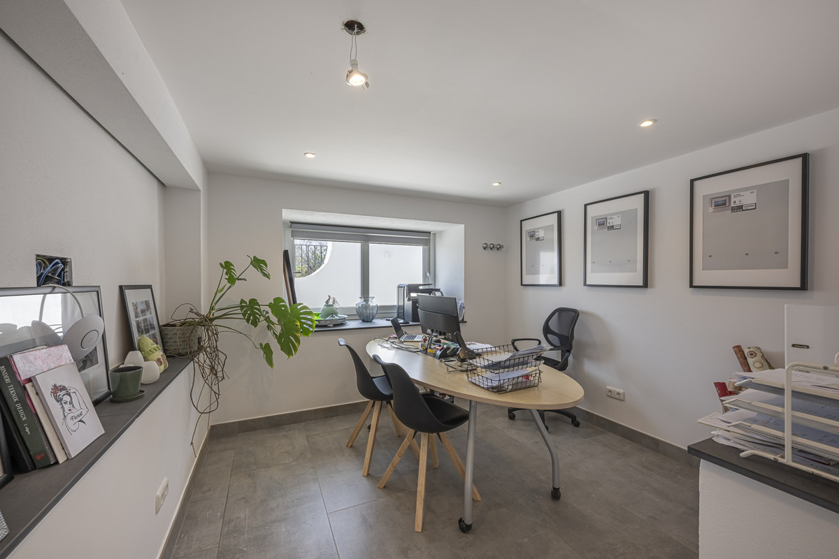 The villa's lower pool level features a self-contained apartment with private access, offering three bedrooms, 2 bathrooms, and a shower, ideal for guests, extended family, or home office. Other features include solar panels with potential for expansion, underfloor heating, three garages, and a spacious driveway for up to five cars.