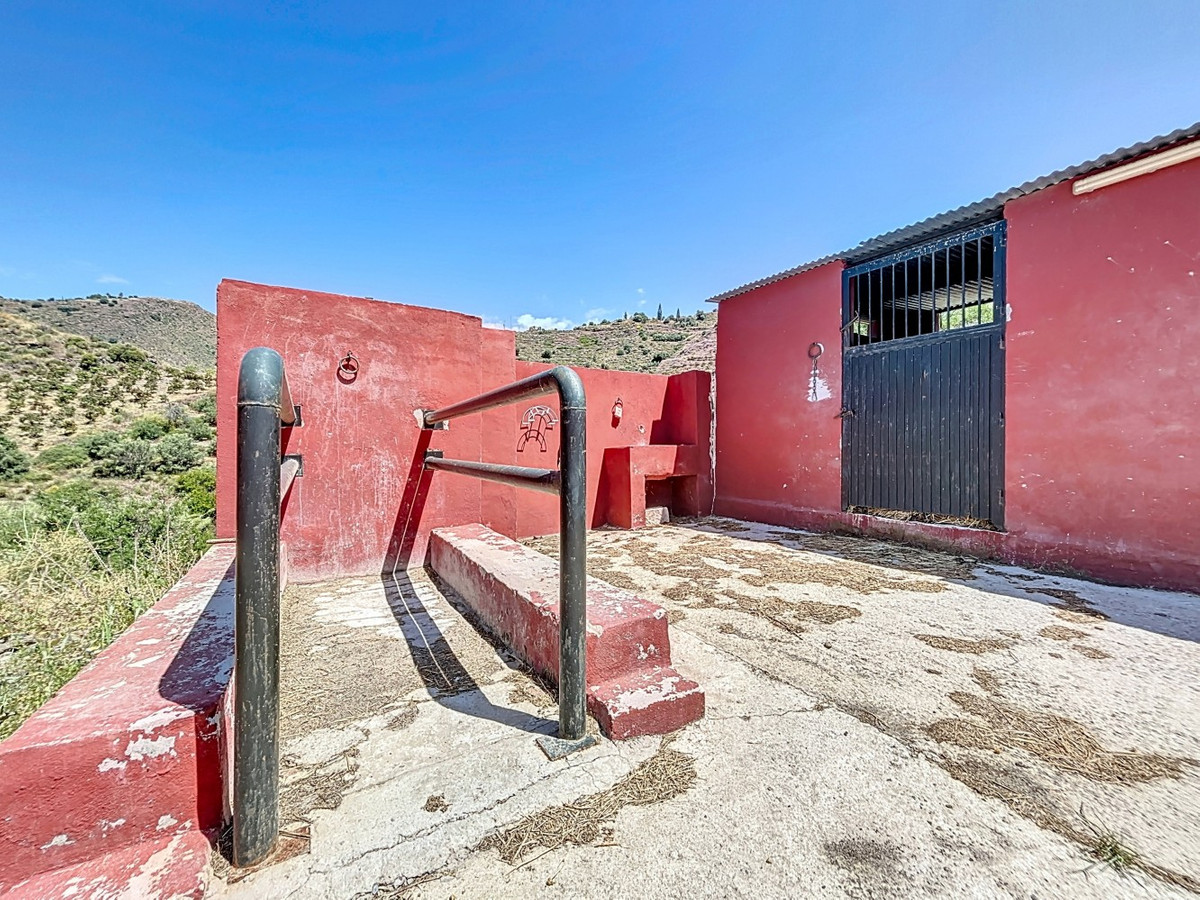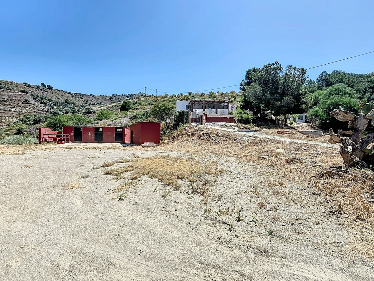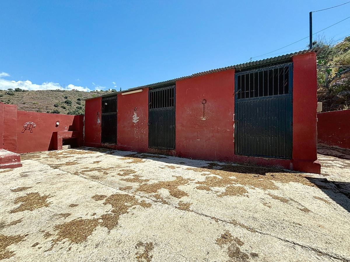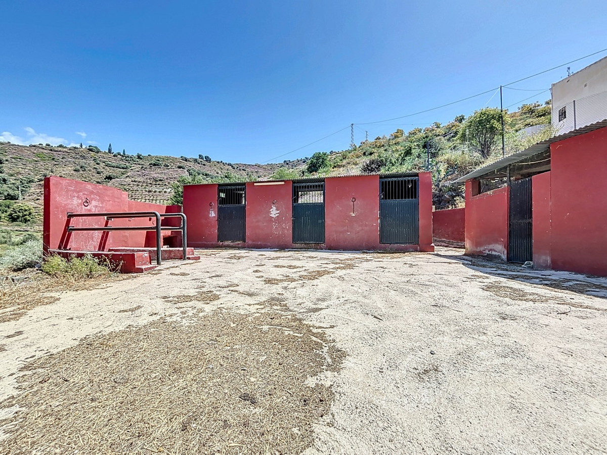 This charming country house in Torrox is situated on a plot of over 7,000 m2 and offers ideal conditions for horse lovers and those who want to enjoy life in the countryside. The house features an open-plan living and dining area with an adjoining kitchen and a cosy wood-burning stove. Exposed wooden beams give the space a warm and welcoming atmosphere. There are two bedrooms and a bathroom with a shower. Air conditioning units provide a comfortable indoor climate during the warmer months. Outside, youll find a covered summer kitchen, a spacious terrace, and a garden area with an above-ground pool perfect for enjoying the outdoors. The property is well equipped for horse keeping: below the house are three stables, a shelter, a washing area and a storage room. There is also space to build a riding arena or paddocks if desired. A wonderful place for those who want to combine nature, tranquillity, and a life with animals. We are pleased to be able to present this dream property to you soon, either personally or via virtual viewing. Because this world is unique - just like our Axarquía. In Andalusia. On the Costa del Sol. Here, on the sunny side of life...