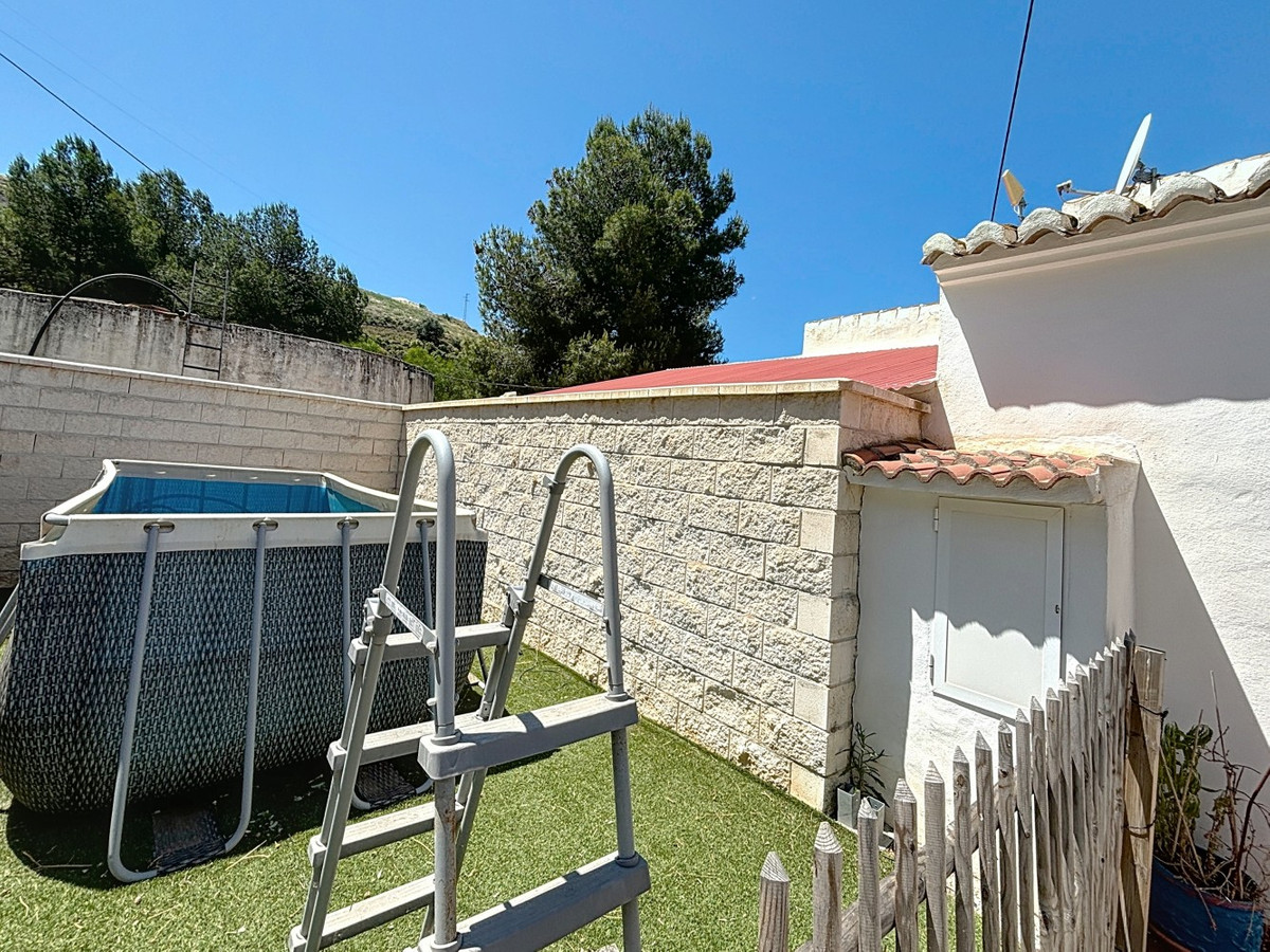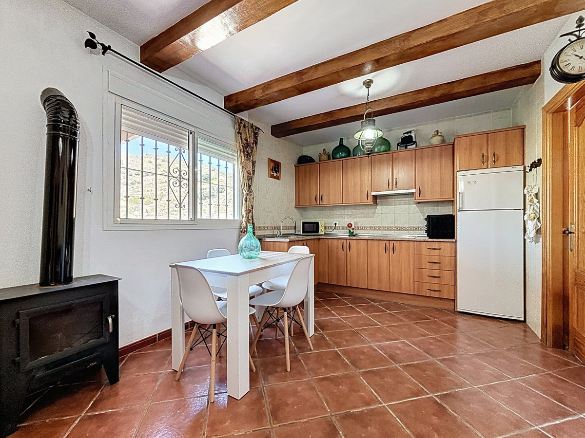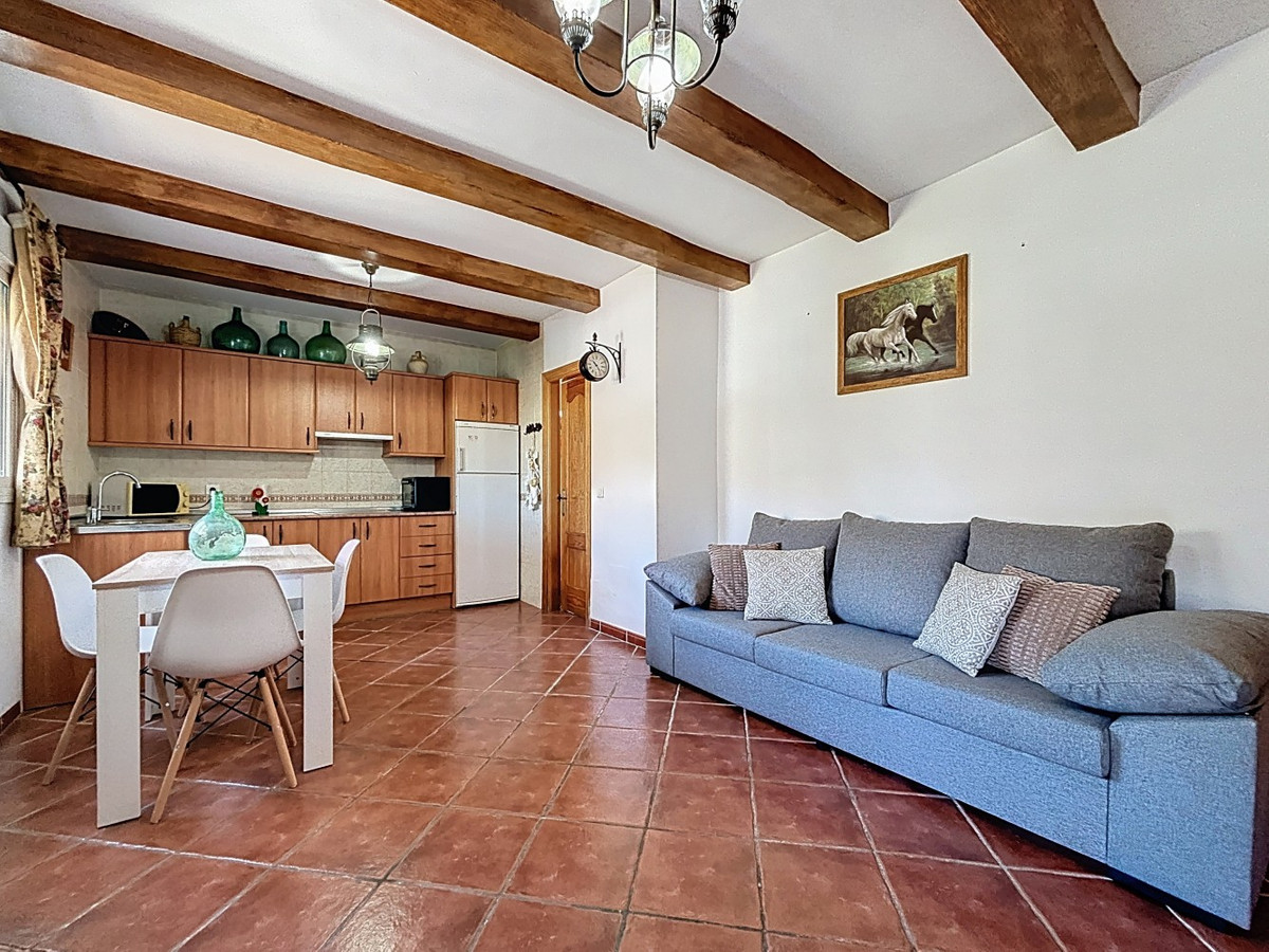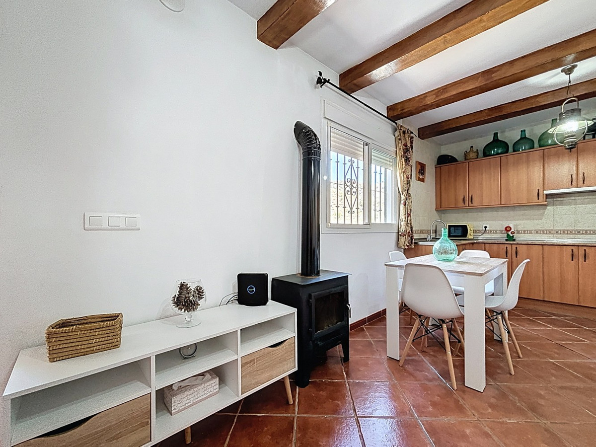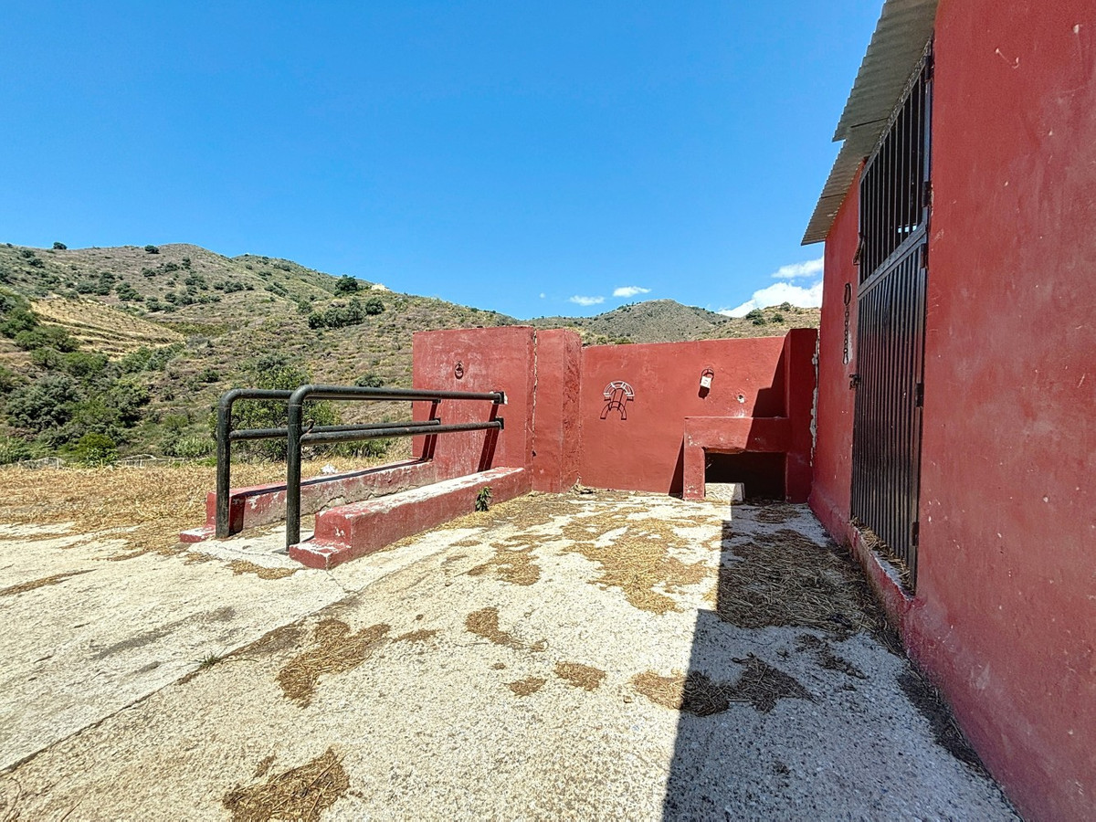 This charming country house in Torrox is situated on a plot of over 7,000 m2 and offers ideal conditions for horse lovers and those who want to enjoy life in the countryside. The house features an open-plan living and dining area with an adjoining kitchen and a cosy wood-burning stove. Exposed wooden beams give the space a warm and welcoming atmosphere. There are two bedrooms and a bathroom with a shower. Air conditioning units provide a comfortable indoor climate during the warmer months. Outside, youll find a covered summer kitchen, a spacious terrace, and a garden area with an above-ground pool perfect for enjoying the outdoors. The property is well equipped for horse keeping: below the house are three stables, a shelter, a washing area and a storage room. There is also space to build a riding arena or paddocks if desired. A wonderful place for those who want to combine nature, tranquillity, and a life with animals. We are pleased to be able to present this dream property to you soon, either personally or via virtual viewing. Because this world is unique - just like our Axarquía. In Andalusia. On the Costa del Sol. Here, on the sunny side of life...