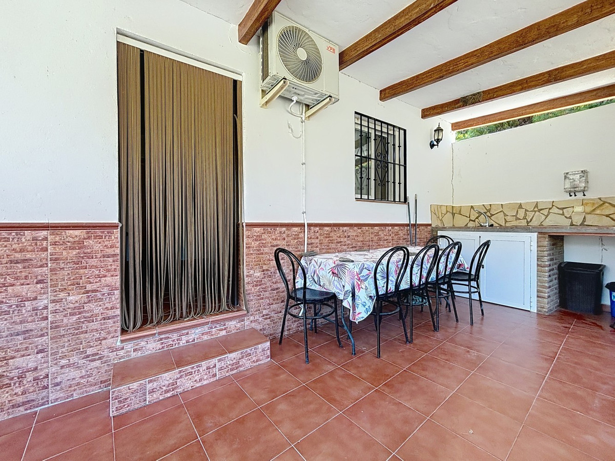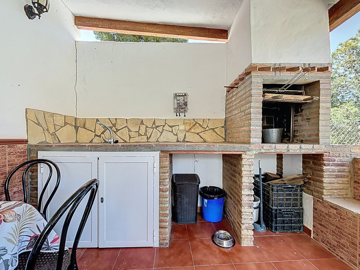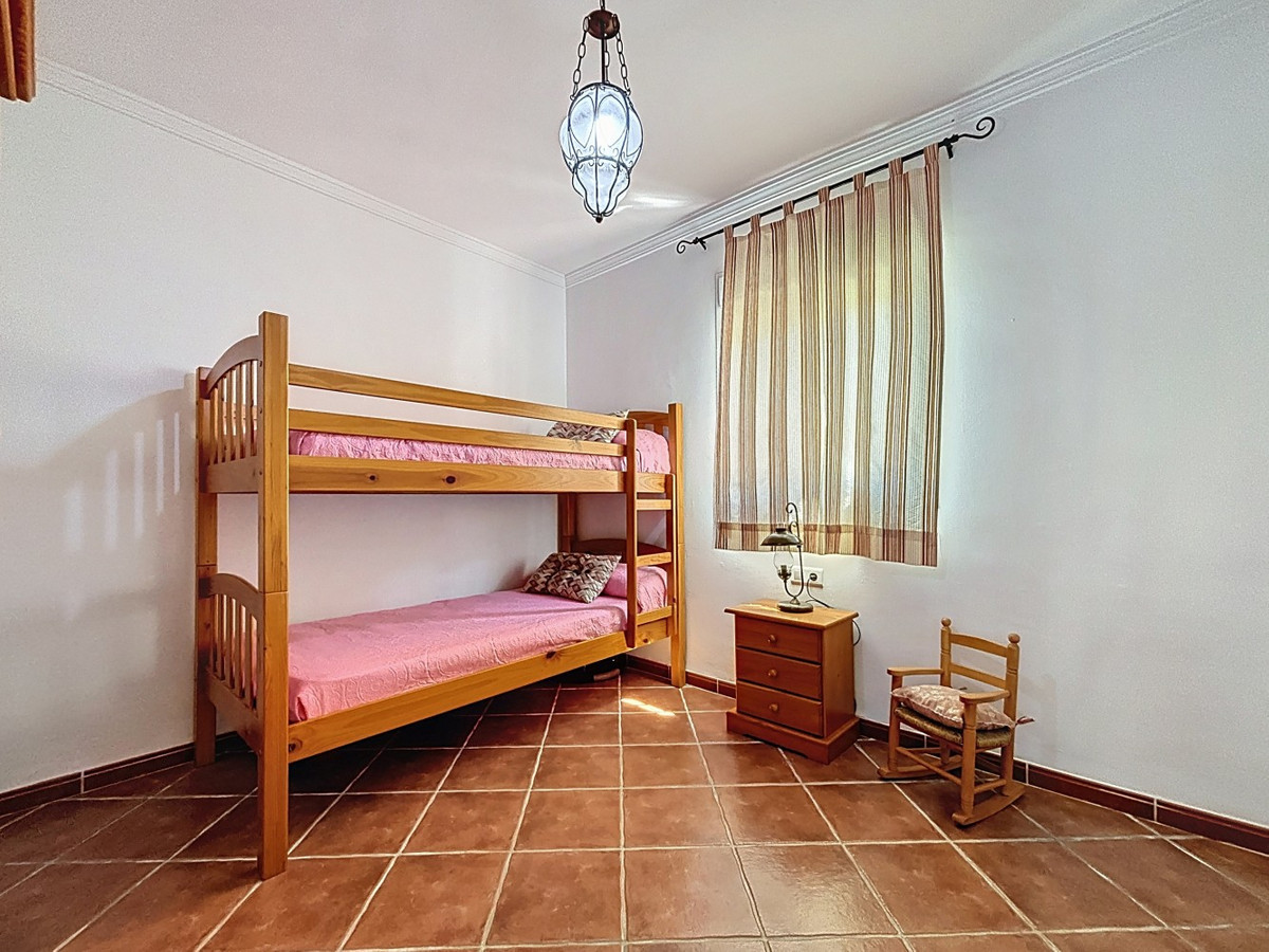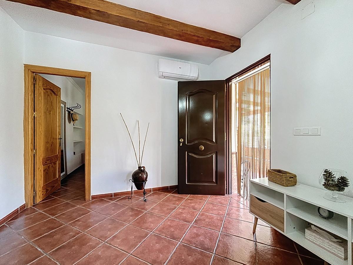 This charming country house in Torrox is situated on a plot of over 7,000 m2 and offers ideal conditions for horse lovers and those who want to enjoy life in the countryside. The house features an open-plan living and dining area with an adjoining kitchen and a cosy wood-burning stove. Exposed wooden beams give the space a warm and welcoming atmosphere. There are two bedrooms and a bathroom with a shower. Air conditioning units provide a comfortable indoor climate during the warmer months. Outside, youll find a covered summer kitchen, a spacious terrace, and a garden area with an above-ground pool perfect for enjoying the outdoors. The property is well equipped for horse keeping: below the house are three stables, a shelter, a washing area and a storage room. There is also space to build a riding arena or paddocks if desired. A wonderful place for those who want to combine nature, tranquillity, and a life with animals. We are pleased to be able to present this dream property to you soon, either personally or via virtual viewing. Because this world is unique - just like our Axarquía. In Andalusia. On the Costa del Sol. Here, on the sunny side of life...