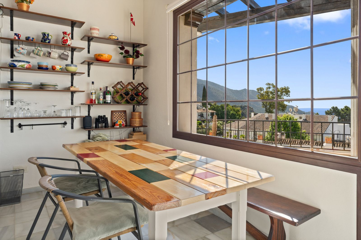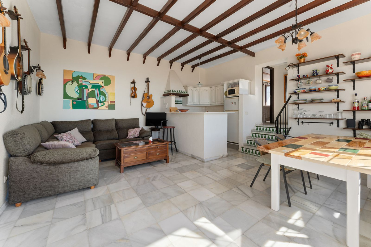 Dream of sipping your morning coffee while the Mediterranean shimmers in front of you? Step onto the 25 m², south-facing terrace of this Nuevo Pueblo townhouse and that's exactly the start to every day. The space is wide enough for dining and lounging zones, fitted with a built-in stone barbeque, and—best of all—has its own gate that swings straight onto the communal pool deck, so the kids (or the sangria) never have far to travel. From here the sea stretches blue to the horizon, a view shared by the living room thanks to wall-to-wall patio doors.