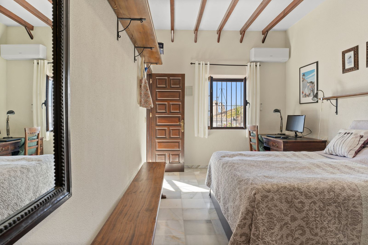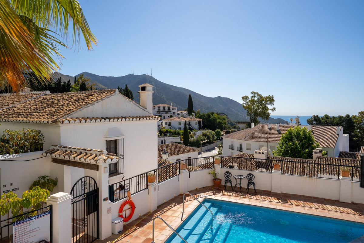 Nuevo Pueblo itself is the picture-book "pueblo blanco"—whitewashed façades, tumbling bougainvillea and cobbled paths—but without the hills: it sits on the edge of Mijas Pueblo, just 700 m or so—an easy eight-minute, level stroll—from the main square with its tapas bars, craft shops and weekly market, and there's a €1 bus that stops almost outside the gate for beach or airport runs.