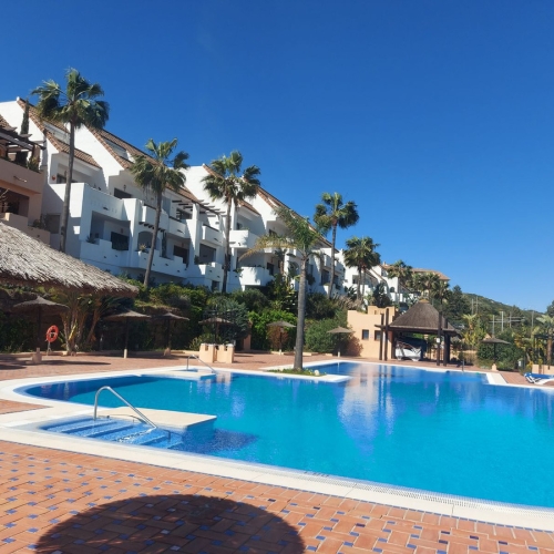 Privileged location in a beautiful private residential community with 24-hour security, offering peace, safety, and just 5 minutes from all essential services and the Port of La Duquesa. Situated in a meticulously maintained complex with extensive communal areas including an outdoor swimming pool, heated indoor pool, and a social area for events and gatherings. This sophisticated 3-bedroom, 3-bathroom property stands out for its excellent southeast orientation, providing abundant natural light throughout the day. It boasts partial sea and pool views from its spectacular 14 m² terrace — the perfect spot to enjoy the Mediterranean climate in a relaxed and private setting. The home has been built with luxury finishes, including a fully equipped modern kitchen, marble flooring, and impeccable details. It also comes with a private parking space and a storage room, adding extra convenience. A unique opportunity to acquire an elegant home with high rental potential and an excellent price-quality ratio. A secure investment and an ideal place to live all year round!