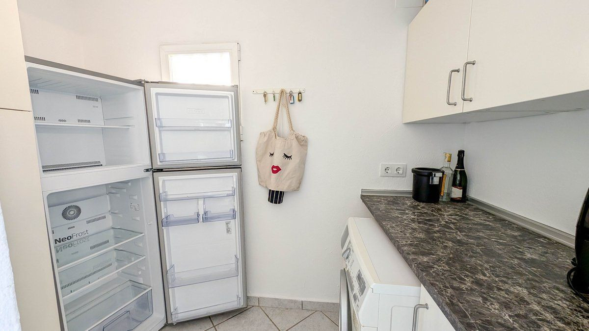<strong>Upper floor:</strong> Entrance hall with guest toilet and laundry, large living-dining room with open-plan kitchen, one spacious bedroom with open terrace and en-suite bathroom. Air conditioning and pre-installation of gas central heating with radiators already fitted.