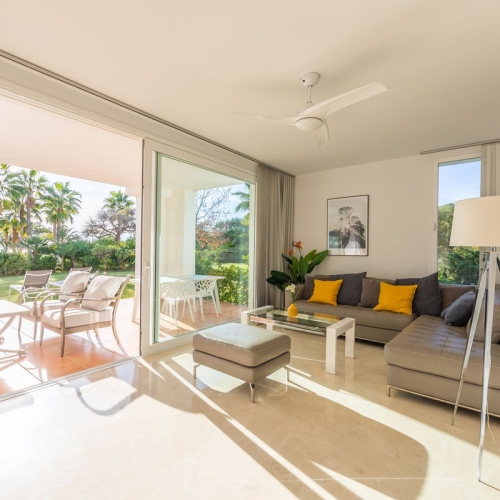 Lovely 2-bed apartment with terrace, private garden and sea and golf views in Casares Costa.