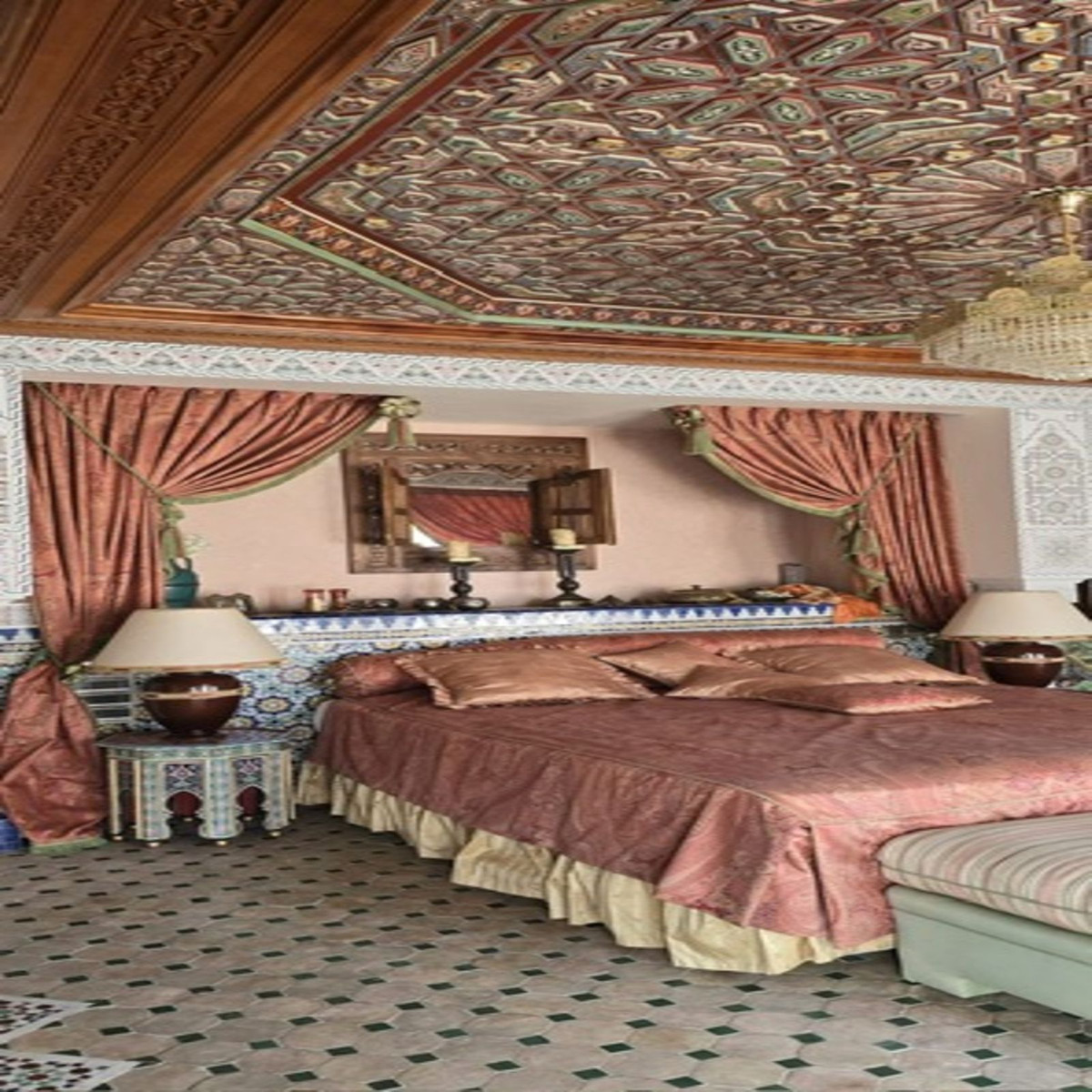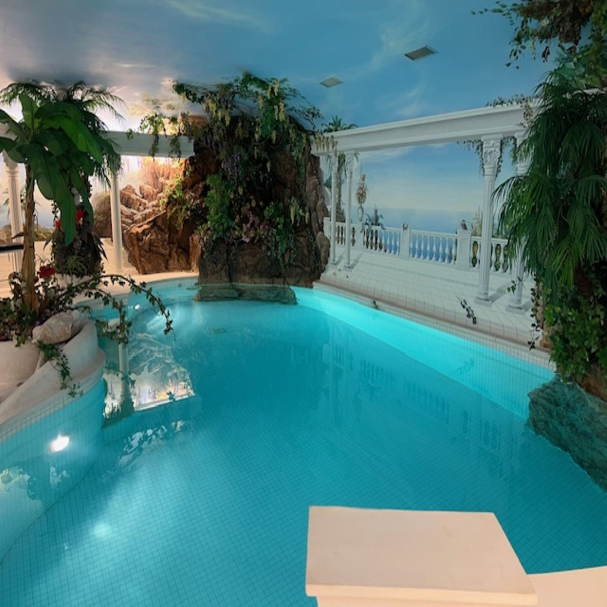 Everything in this mansion is made with the finest materials. The bedrooms all have huge built-in wardrobes, all with en-suite bathrooms, and the house has an indoor pool and sauna, a security room, etc.