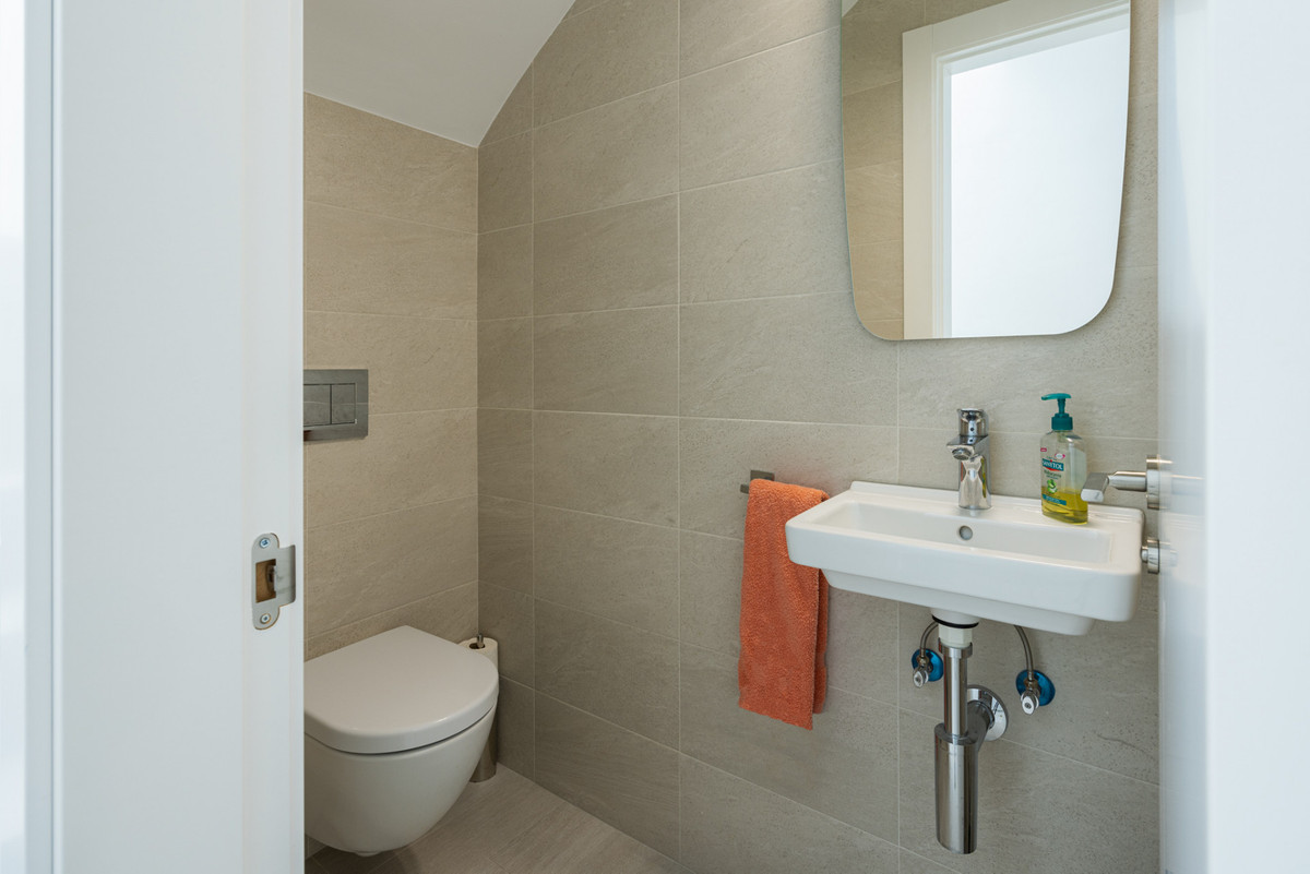 This beautifully renovated townhouse offers modern design and comfort. It includes three bedrooms, two bathrooms, and a guest toilet. The master bedroom has an ensuite with underfloor heating, which is also available in the guest bathroom.