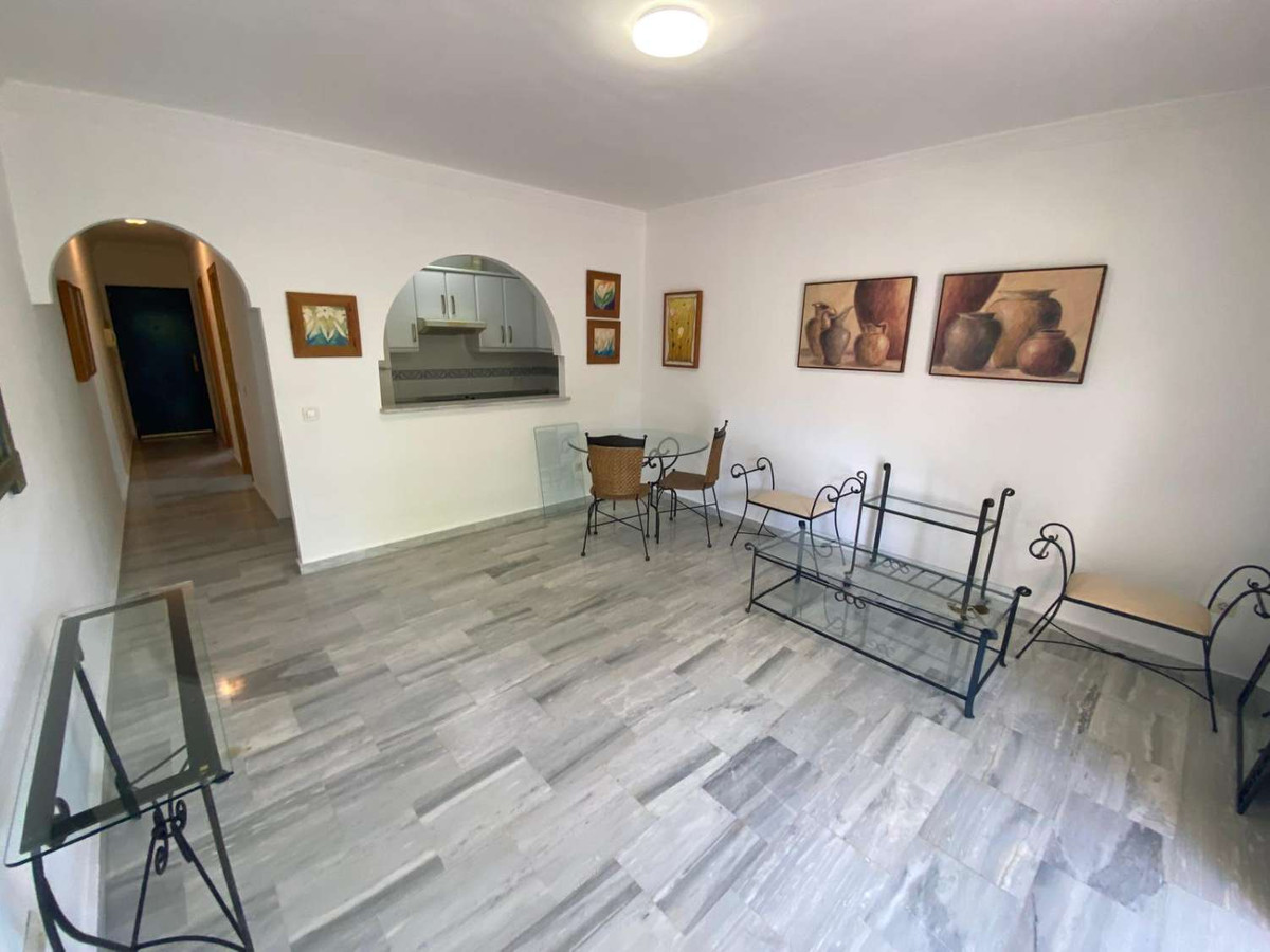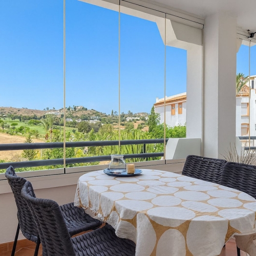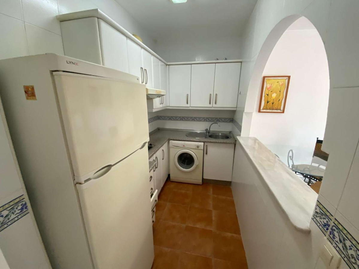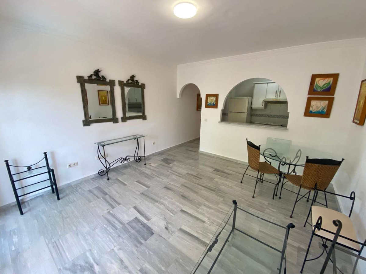 Discover this excellent one-bedroom apartment nestled in the serene residential area of Mijas Golf. Spanning 59 m², this inviting space features a brand new bathroom and a fully equipped kitchen, perfect for culinary enthusiasts. The cozy living room opens up to a delightful terrace with unobstructed views, ideal for enjoying morning coffee or evening sunsets.
