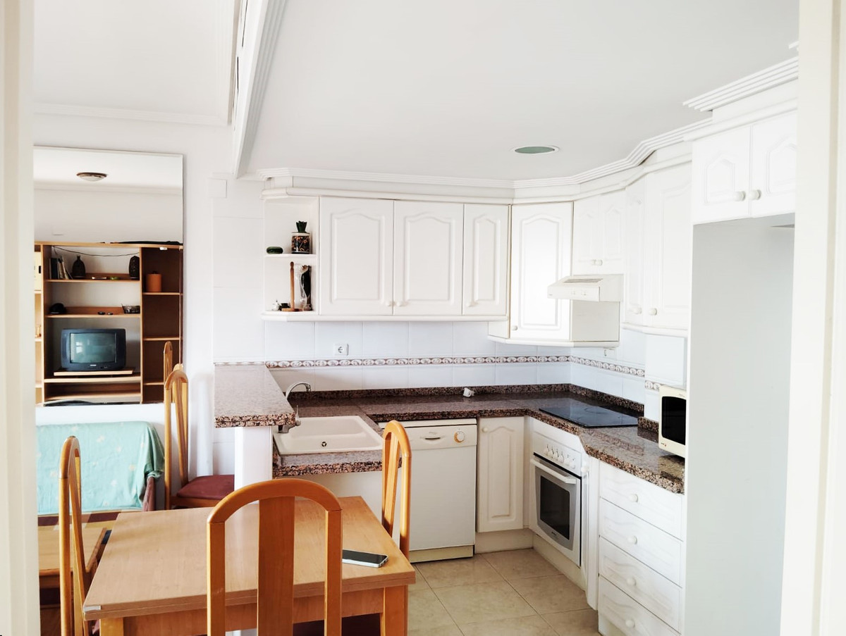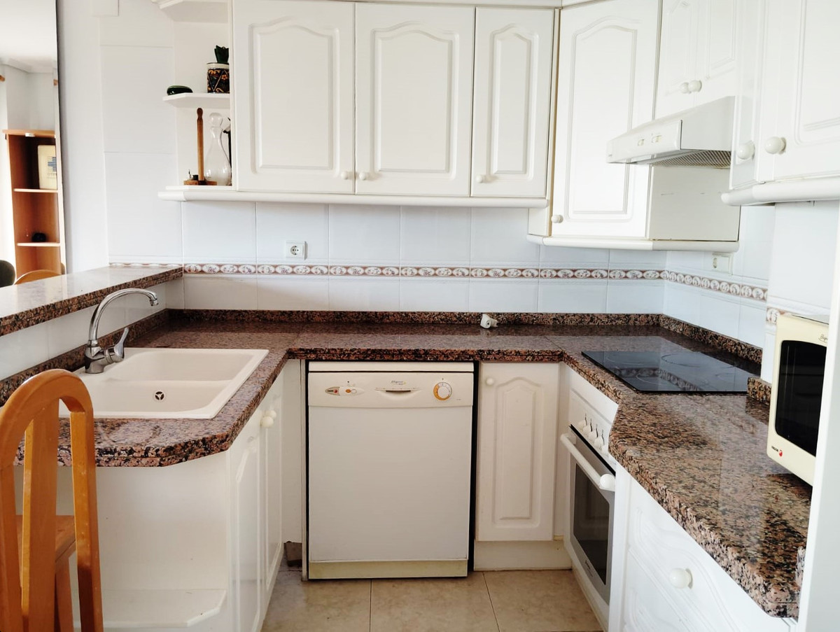 A large living room with large windows opens the doors to a comfortable 17-meter balcony with views of the sea and the gardens of the communal area from where we can enjoy a comfortable space for table and chairs. In the living room and divided with an American bar we find the kitchen with plenty of storage space, fully equipped.