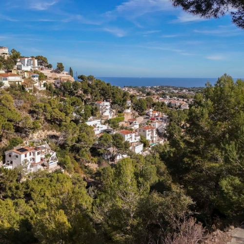 This plot is located in the Tossal Los Bancales area of Benissa and offers panoramic views of the green hills of Benissa, the beautiful Mediterranean sea and the Cap D'or in Moraira. Water and electricity are already provided and footpaths are already in place. The plot is very steep, but there is already a custom-built project ready that can also be purchased if preferred. Then contact us today for a viewing! More information on request. The adjacent land of 1565 m2 is also for sale. The beautiful coast of Benissa is just 2 km away and offers several idyllic beaches perfect for sunbathing, snorkeling, etc. Moreover, the plot is located in a very central location with respect to the surrounding villages and towns. In just 10 minutes you can reach the large sandy beaches of Calpe as well as the historic center of Benissa. And in just under 20 minutes you are in the tourist port village of Moraira.