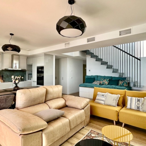 We present this spectacular 98 m² penthouse in La Cala de Villajoyosa, one of the most tranquil and pleasant areas of the Costa Blanca. Ideal for year-round living or as a vacation home.✨ Main Features:• ???? 3 bedrooms• ???? 2 full bathrooms• ???????? Upper floor with independent office – perfect as a private workspace or additional bedroom for an older child• ???? Spacious living-dining room flooded with natural light• ???? Two bedrooms on the main floor, one en-suite with private bathroom.???? Modern and Functional Kitchen:• Spacious and bright kitchen, perfectly designed to make use of every corner. • Central island ideal for cooking and socializing. • Built-in wine cellar. • Latest generation BOSCH appliances. ???? Terrace: From the terrace you can enjoy spectacular sea views, a perfect space to relax, sunbathe or enjoy outdoor dinners against the backdrop of the Mediterranean.