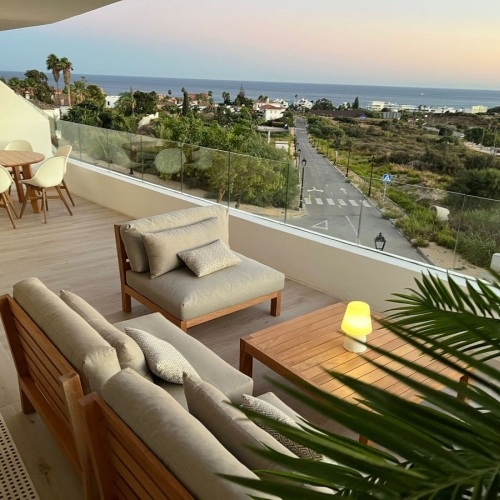 The layout is spacious and practical, featuring a generous living area, two comfortable bedrooms, and two bathrooms, one of which is en-suite. Large windows allow plenty of natural light and create a seamless indoor-outdoor flow. From the private terrace, you can enjoy beautiful sea views.