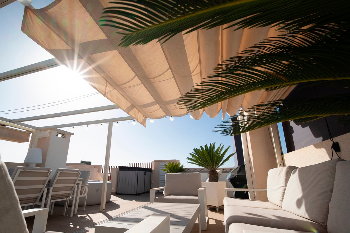 In addition, the apartment includes a private rooftop solarium of around 56.22 square meters, accessible by an internal staircase, featuring a jacuzzi and open views, ideal for enjoying the climate and privacy.