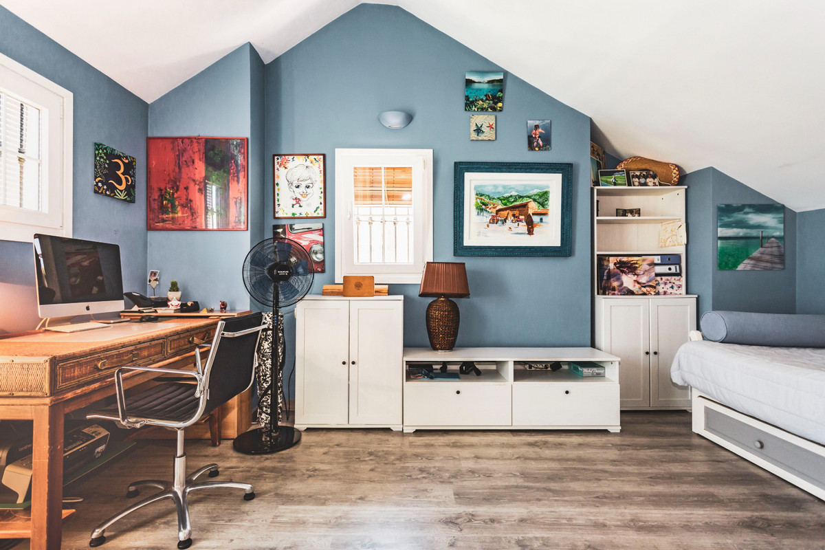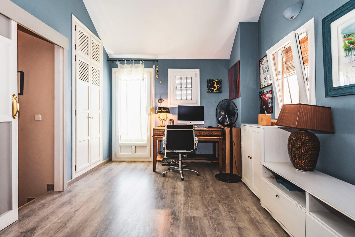 • Top floor: open-plan space with a terrace, currently used as a guest room, with the potential to add a third en-suite bathroom.