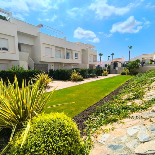We are pleased to present this top floor apartment on the La Finca Golf Resort, Algorfa. The property is on the top floor and has an open plan layout with a lounge diner, and American style, fully equipped kitchen. The lounge has a feature fireplace and patio doors that give access to a terrace, perfect for enjoying your morning coffee. Stairs from the terrace lead up to a large private solarium with incredible views of the countryside and mountains.