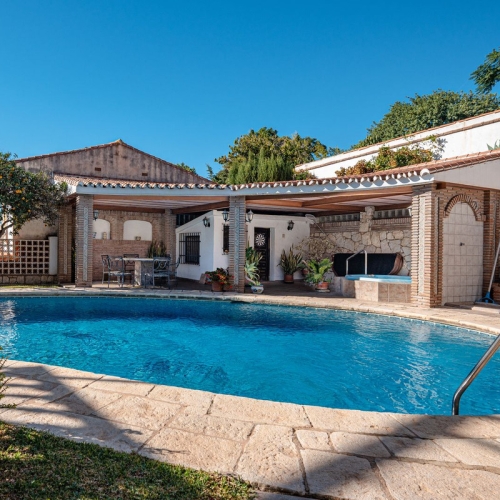 This spacious 6-bedroom single-level villa is a great find for anyone looking for a comfortable home with fantastic outdoor space and sea views. Located in a quiet and well-established area of the Costa del Sol with walking distance to the shops and restaurants in Benalmadena Pueblo.