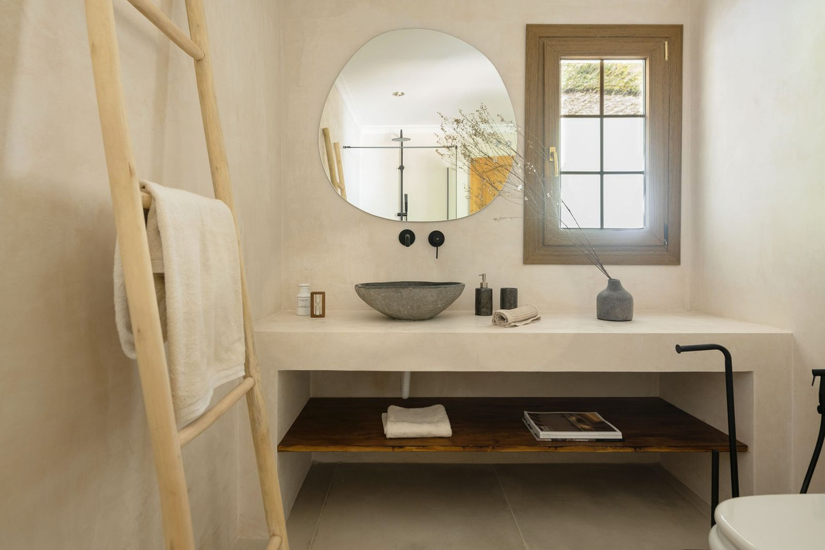 The five bedrooms, all with en-suite bathrooms, offer luxurious and comfortable accommodation. In addition, there are two outdoor areas ideal for leisure and relaxation, including a poolside area with comfortable sunbeds and a lush private garden.