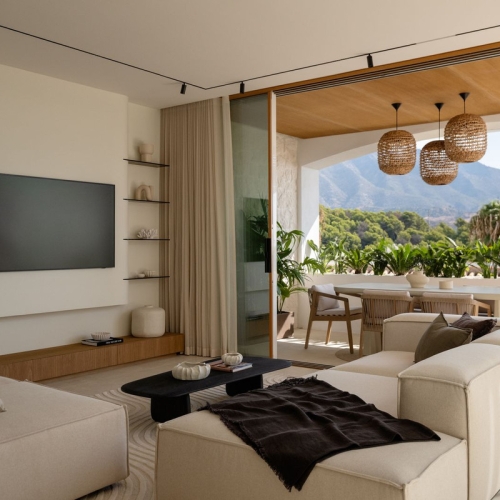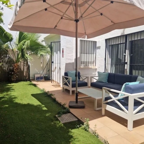 Beautiful townhouse in frontline golf urbanization; it consists of several swimming pools and large landscaped areas. It is a closed and very careful community. Renovated Porches, Solarium , Wardrobes, Bathrooms. The wooden roof is of high quality It has on the ground floor entrance hall, large renovated kitchen and full guest bathroom, living room with fireplace and exit to the terrace with porch and views to the pool of this phase. It also has great porch to the north east at the entrance to the ideal house for sunny days and to be at the frequito. Enjoy the communal garden from the porch of the living room On the first floor the 3 bedrooms and 2 bathrooms, one of them ensuite with shower. New fitted wardrobes in all bedrooms. On the second floor large solarium with new wooden porch. Ideal for chill out area and outdoor dinners with barbecue and closed part as well as laundry room. The fantastic panoramic views to the entire grove area and La Quinta mountains. The urbanization is close to everything: Supermarkets, Colleges, Shops, Restaurants etc.. is ideal for Holidays or for families. And perfect to live all year. It has general air conditioning throughout the house and blinds. San Pedro de Alcantara is a 4-minute drive from Puerto Banus. It is for all an ideal house