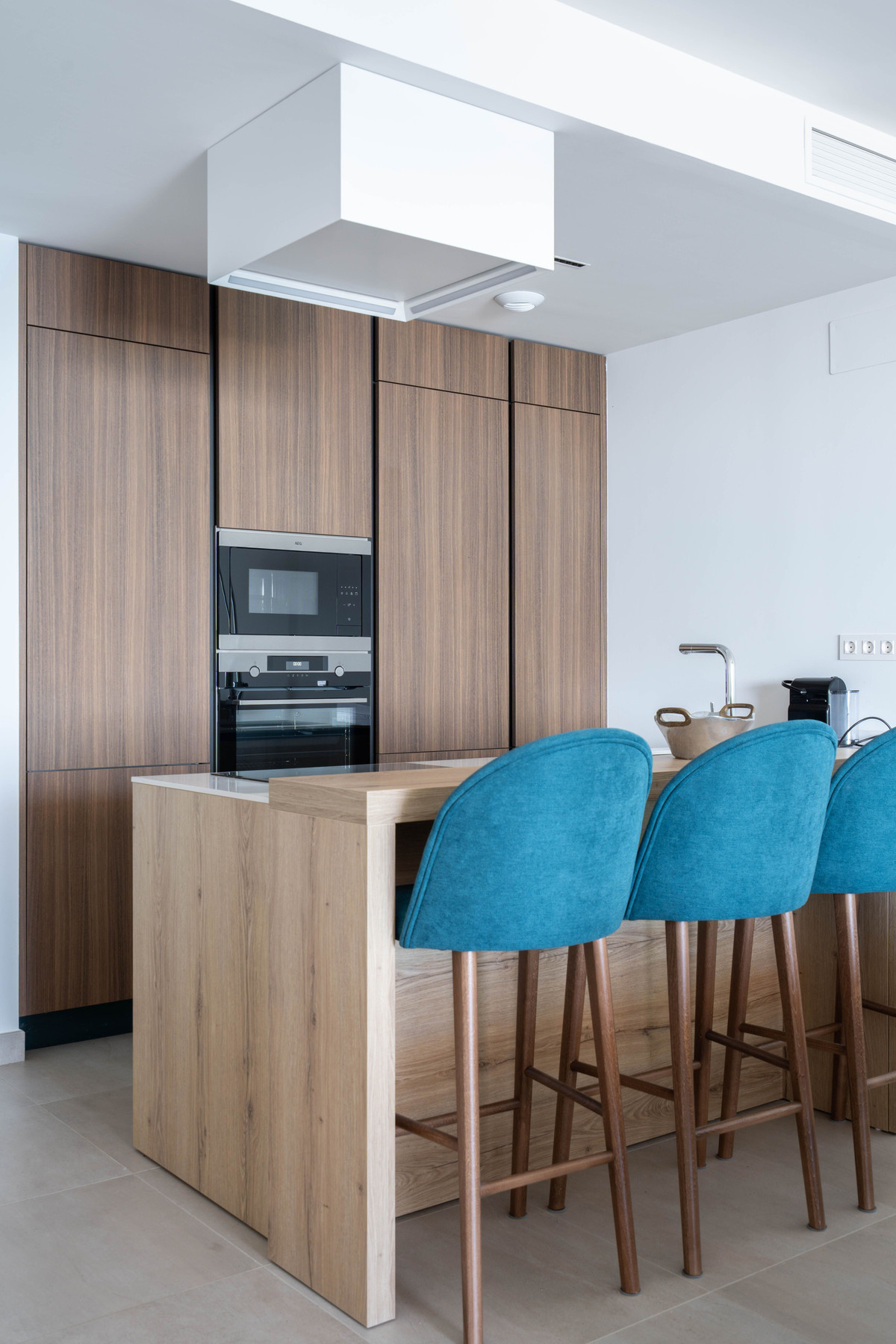 The apartment features two spacious bedrooms, one of which has an en-suite bathroom. The modern kitchen and living room have an open floor plan with direct access to the terrace. The master bedroom also has its own access to the terrace. The layout is bright and open, with high-quality finishes and plenty of natural light.