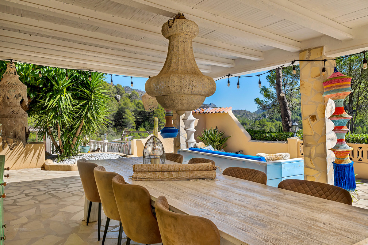 Stunning outside spaces, large terrace with outstanding views, large swimming pool, off grid solar power and back up generator.