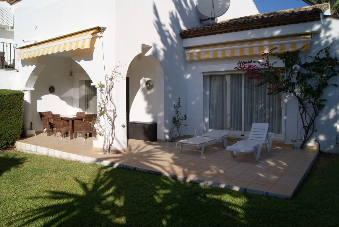 This townhouse has been well maintained by the current owners who have redecorated and replaced the kitchen, bathroom and windows. The open plan living /dining room opens out on to a covered terrace and beautiful private garden (with gate access to community pool area). Also on the ground floor, the very large third bedroom has patio doors leading to the garden. From the garden there is access to a useful separate utility / storage area.