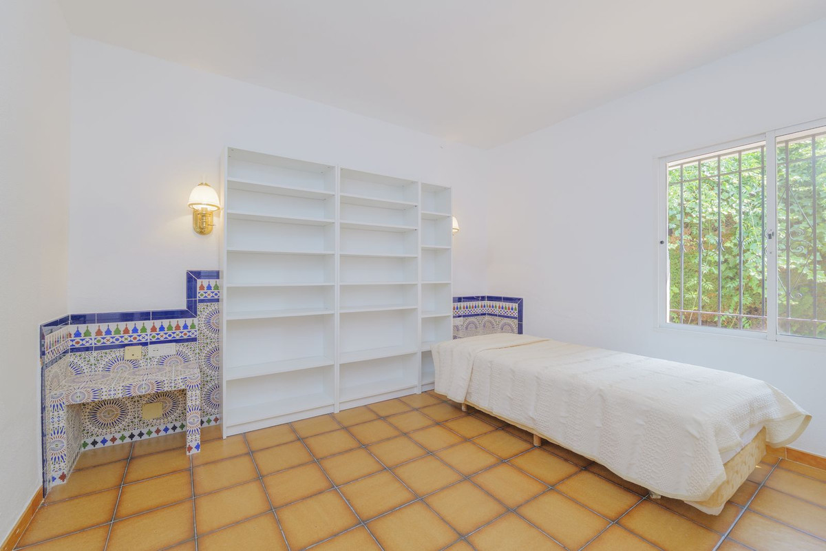 Detached Villa at the renowned and consolidated residential area of El Mirador de Marbella. A house designed for relax and enjoyment, near schools, supermarkets and just a stone's throw away from the A7. With the enchanting Andalusian scent, and a 823sqm plot, the two level dwelling displays a fully fitted kitchen with pantry and independent entrance, a guest toilette, the cosy living room with access to the covered 20sqm terrace and garden plus an adjacent dining room; besides, two ample bedrooms that share a bathroom with Sauna. On the upper level, the main bedroom, with bathroom en suite, lounge and small office like corner adding a second 10sqm terrace with a glimpse of the sea. This charming traditional style property boasts, eventually, a nice and sunny pool and a BBQ area conveniently situated and covered. Private parking also covered. Charm and details for this property with an enviable location, within Marbella town area, with plenty of amenities and leisure offer at hand, and yet, tranquil and private, as one could expect from a property of this level.