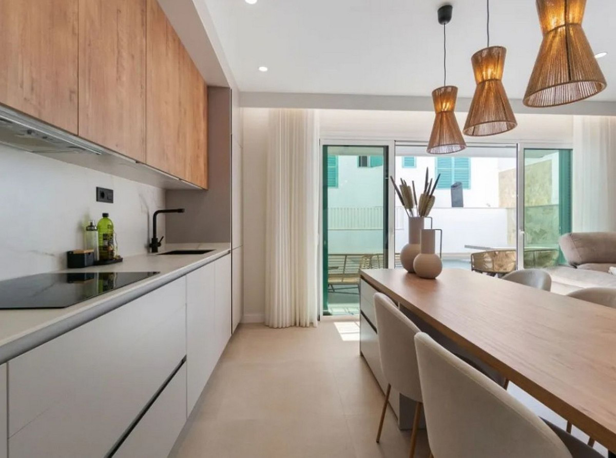 This property features three bedrooms, two bathrooms, a combined living and dining area, and a fully equipped kitchen. You'll also find a spacious, sunny terrace complete with a private swimming pool, as well as an additional terrace with artificial grass. The apartment also benefits from air conditioning and is being sold fully furnished.