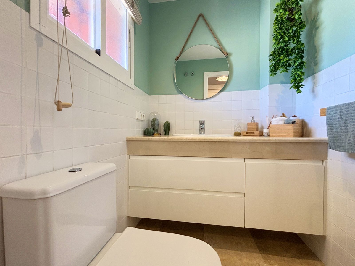 Located in a peaceful residential development in Estepona, just a few minutes' drive from all amenities, shops, and schools, this bright south-facing townhouse is spread over three comfortable levels — perfect for families or as a second home on the Costa del Sol.The basement level features a spacious 53 m² private garage, ideal for both vehicles and storage.The main floor offers a guest toilet, an independent kitchen, and a cozy living-dining room with direct access to a pleasant terrace, which in turn provides easy access to the communal areas and swimming pool — perfect for enjoying the Mediterranean climate.Upstairs, there are three naturally bright bedrooms and a full bathroom; the master bedroom also includes a small private terrace.The community is well-maintained and quiet, with a swimming pool and green areas, all with low maintenance costs.An excellent investment opportunity, whether for year-round living or as a high-yield rental during the peak season.Don't hesitate to come and visit!