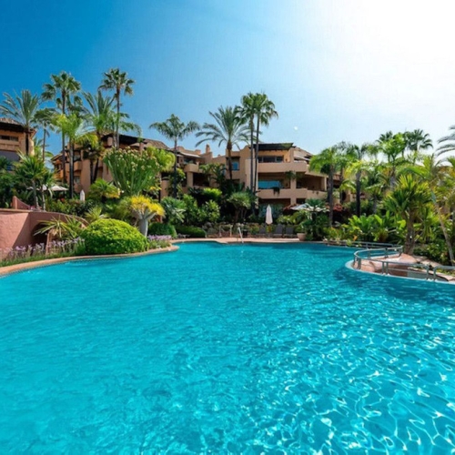 This magnificent ground floor apartment is located in Vivero de Marbella, a quiet, low-rise residential complex in the prestigious Sierra Blanca area on Marbella's Golden Mile, between Imara and Le Blanc. Recently renovated with high-quality materials, the apartment offers a modern open-concept layout. It features a fully equipped kitchen with a breakfast bar and a bright living-dining area that opens onto a cozy terrace with outdoor sitting and dining areas and direct access to the communal garden. The master bedroom includes an en-suite bathroom and access to a private balcony, while the other two bedrooms share a bathroom. All bedrooms have built-in wardrobes, and there is also a practical separate laundry room. The complex is very well maintained and offers beautiful gardens with water features, a swimming pool, and communal parking. It's an ideal place to enjoy peace and comfort in one of Marbella's most exclusive areas. With a tourist license in place, the property presents an excellent investment opportunity.