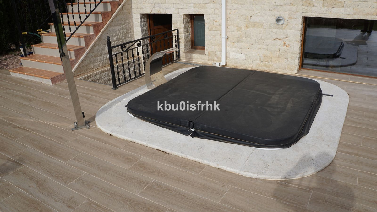 The generously sized outdoor area is perfect for enjoying Mediterranean living with a jacuzzi, built-in barbecue, and a garden shed for extra storage. Relax by the pool, host gatherings under the stars, or take in the unbeatable views in complete privacy.
