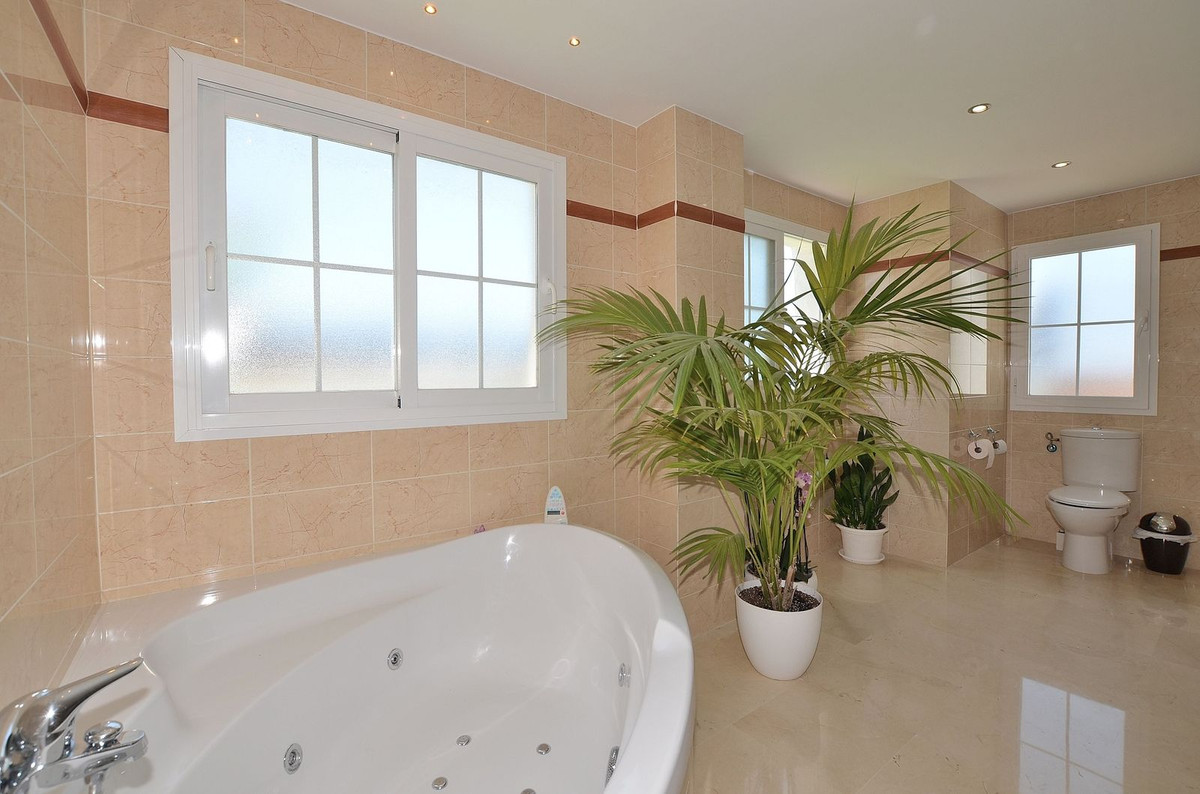 - Master bedroom with walk-in wardrobe and en-suite bathroom featuring a hydromassage bathtub