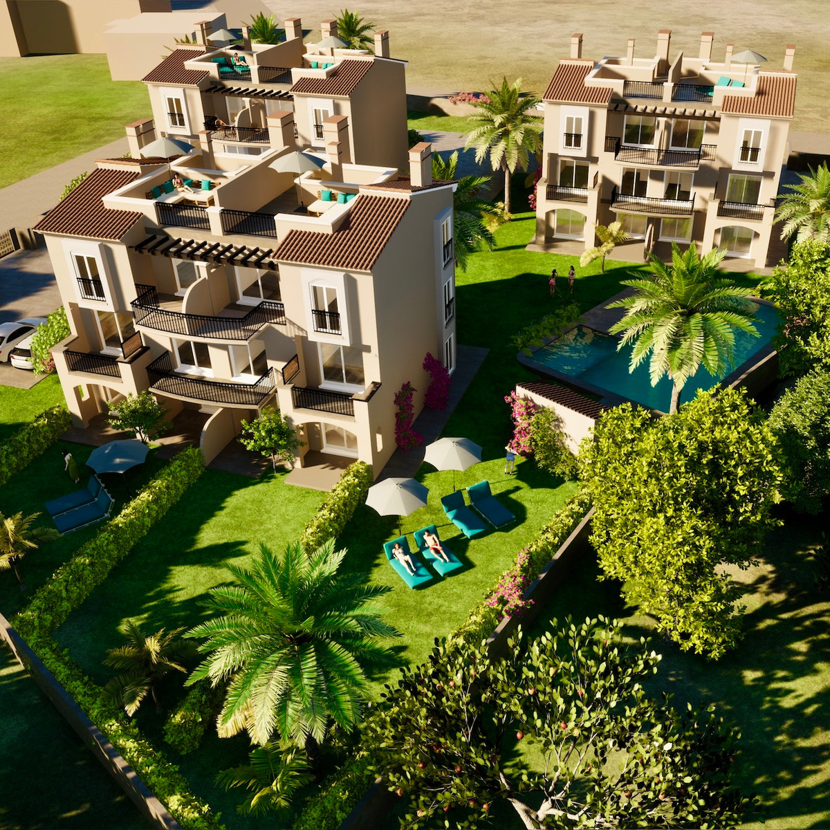There is also a beautiful communal garden with a swimming pool. Prices between 381,150€ and 389,300€.