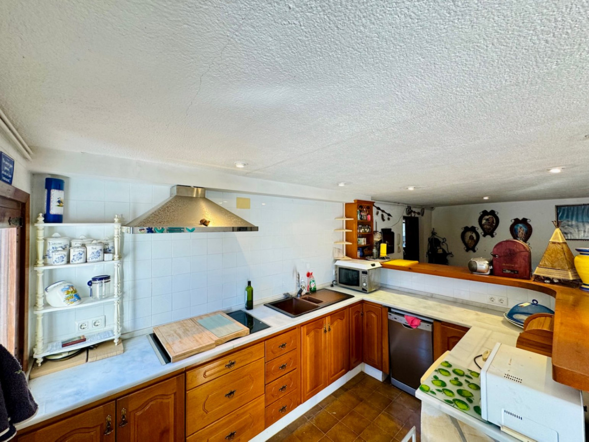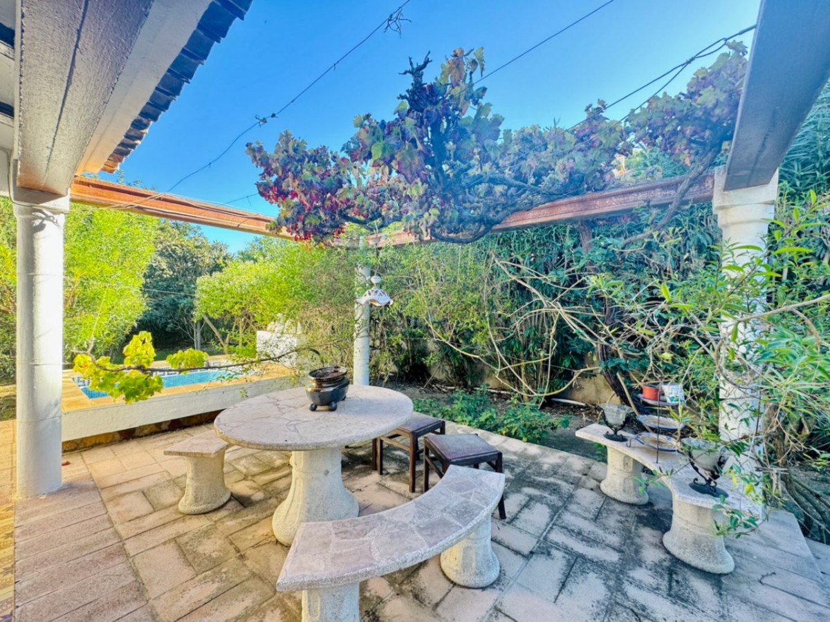 The garden of this villa is a true oasis. The spacious 6x12 meter pool, complete with outdoor shower, provides the perfect place for relaxation and entertainment. The netted barbecue is ideal for summer evenings with friends and family. There is also a Jacuzzi and plenty of space for lounging and sunbathing. Secure parking accommodates at least 10 cars, and a well provides additional water. For nature lovers, there is a separate and enclosed 460 m² orchard with local fruit trees - a piece of authentic Mediterranean in your own garden. The entire garden is mature and landscaped, fenced for optimal privacy.