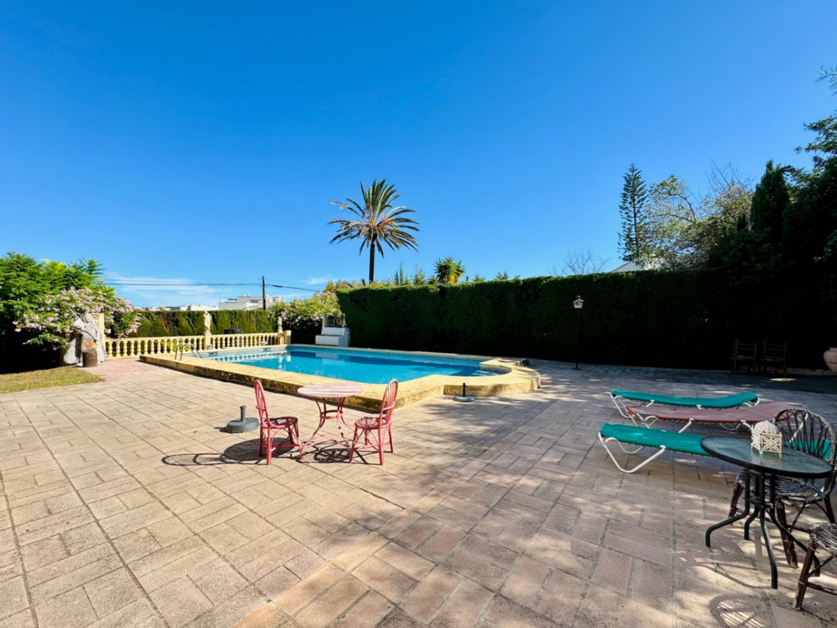 Discover this spacious and versatile villa in Javea, ideal for both private use and commercial activities. Located just 800 meters from the beautiful Arenal sandy beach, this property offers not only space, but also a central location perfect for those looking to enjoy Mediterranean living. The villa is located on a generous plot of 2,309 m² with a beautifully landscaped, mature garden. Although in need of renovation, the property offers endless possibilities to create a true paradise.