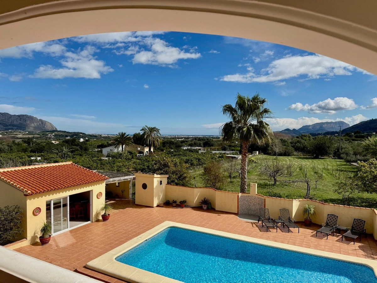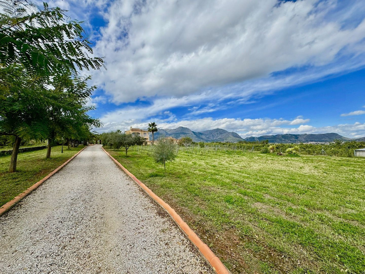 Nestled in the breathtaking Orba Valley, just a short walk from the charming village of Benidoleig, this enchanting 15,000m² estate is a dream come true. Benidoleig, with its picturesque streets, cozy cafés and the famous Cueva de las Calaveras, exudes authentic Spanish charm. The golden beaches of the Costa Blanca are only 15 minutes away, while the vibrant La Marina Shopping Centre in Ondara is just a 10-minute drive.