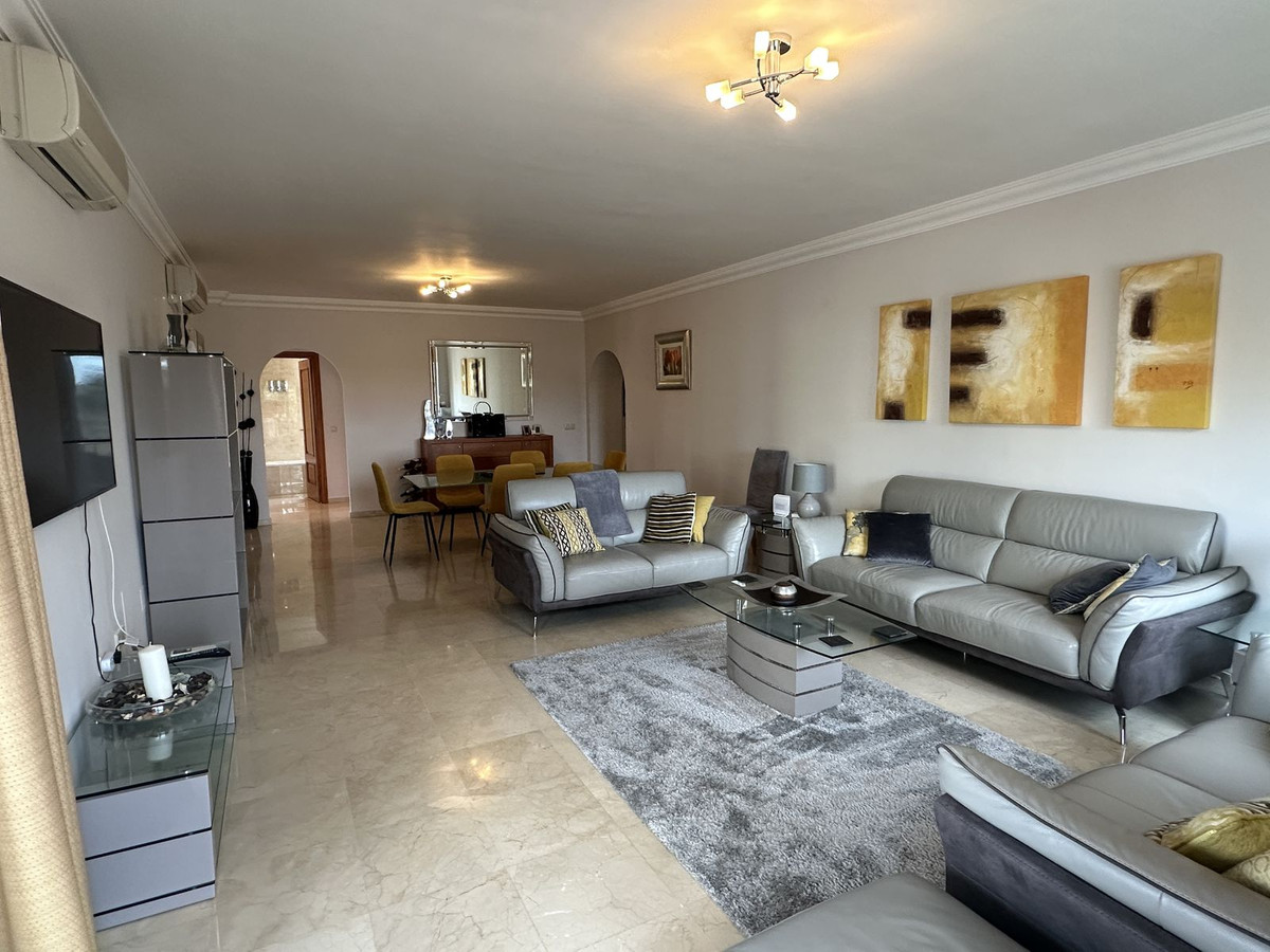 All rooms have installed individual air conditioning units. The apartment benefits from high gloss marble floors throughout, new kitchen fitted with all appliances, underground parking, storage, safe, video-entrance. Benefits include free 300mb fibre optic broadband and over 80 international tv and radio stations included in the community fees.