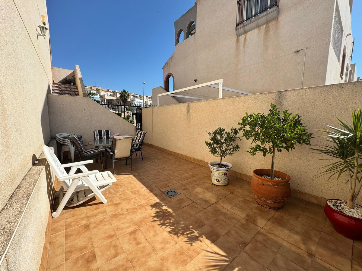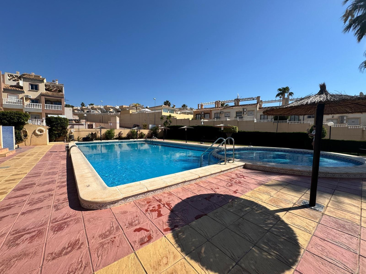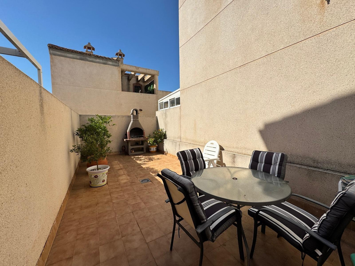 We present this charming townhouse located in the quiet area of Las Filipinas, in Orihuela Costa. With a surface area of 90 m² and a functional design that maximizes space, this property is perfect for both year-round living and vacation enjoyment. It features three spacious double bedrooms and two fully equipped bathrooms, ensuring comfort and privacy for its residents. The kitchen is ready to use and includes all necessary appliances. The southeast orientation allows for excellent natural light throughout most of the day, creating a cozy atmosphere. Additional amenities include hot and cold air conditioning, spacious built-in wardrobes, and a bright balcony where you can relax at the end of the day while enjoying unobstructed views of nearby green areas or even the sea. The exterior does not disappoint: it features a well-maintained garden ideal for spending pleasant moments outdoors; it also has a built-in barbecue perfect for gatherings with family or friends. It also has access to a communal pool located within the residential complex. Its location is unbeatable; Located just 5,000 meters (5 km) from the nearest beach, it offers a variety of recreational options, including renowned golf courses and numerous playgrounds ideal for young families. You'll also be surrounded by all the necessary urban amenities, such as supermarkets, regular buses, shopping centers, schools, etc.; with very reasonable community fees of just €280 per year! Don't miss out on this unique opportunity... Contact us today!