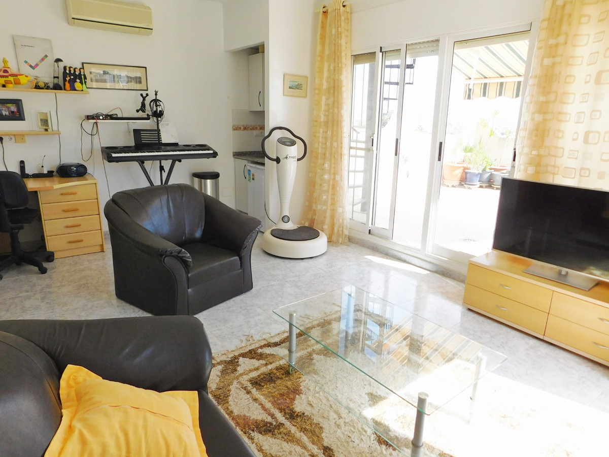 A brief description of the property: as you enter you are greeted by the private swimming pool to the front terrace. Leading into the villa you have the spacious L shaped living room and French style kitchen fully equipped. Having 2 double sized bedrooms and family bathroom on this level with the independent annex apartment upstairs via the external staircase. Consisting of an open living room with kitchen, double bedroom and separate bathroom. Here you have access to the large balcony and spiral stairs to the roof top solarium with gorgeous views of the surrounding area towards the sea. Part furnished.
