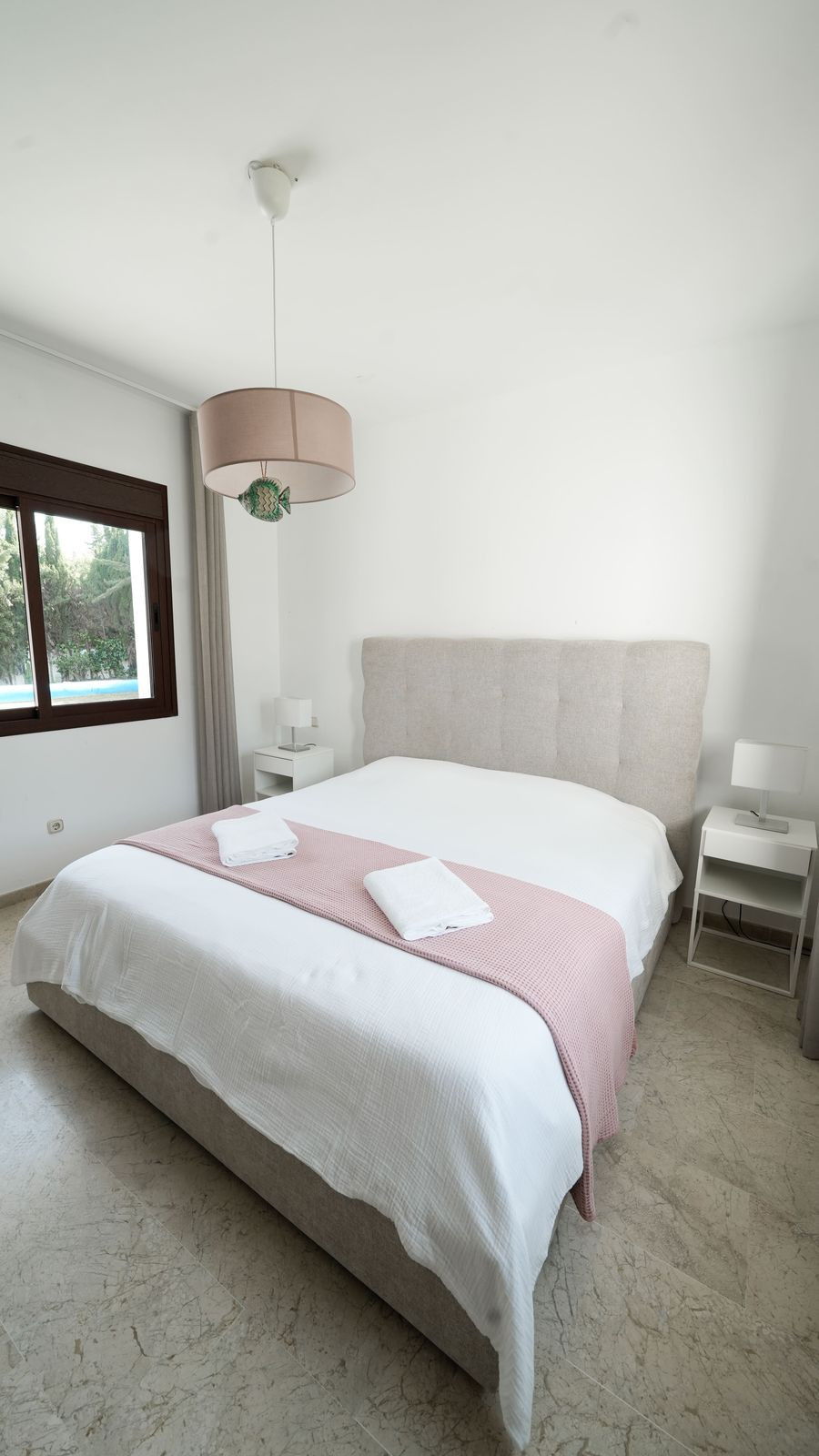 Upstairs, the entire upper floor is dedicated to the principal suite. This luxurious bedroom boasts an en-suite bathroom and direct access to a private terrace with serene views of the surrounding mountains—a perfect spot to relax and unwind.