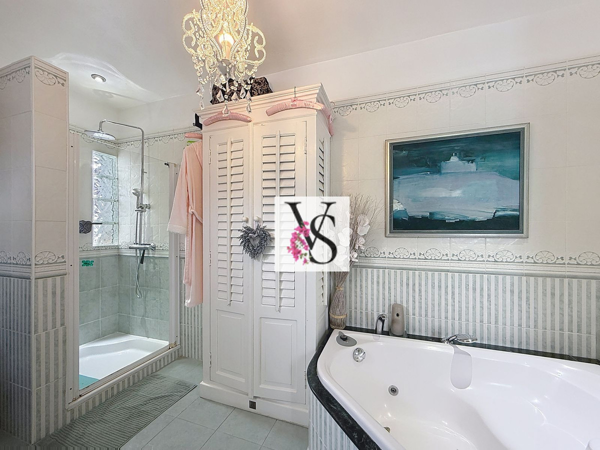 The 2,800 m² estate is fully usable and laid out in levels, providing structure and aesthetics. The terraces are planted with mature fruit trees such as avocado, orange, fig, and olive. An automatic irrigation system, an extra water reservoir, and an energy-efficient installation of solar panels linked to a powerful 10.5 kW battery make maintenance and energy management easy and sustainable. This combination not only significantly reduces energy costs but also increases independence from the electricity grid—a valuable asset in the warm south of Spain. The battery stores energy generated during the day for use in the evening or at times when there is little sunlight.