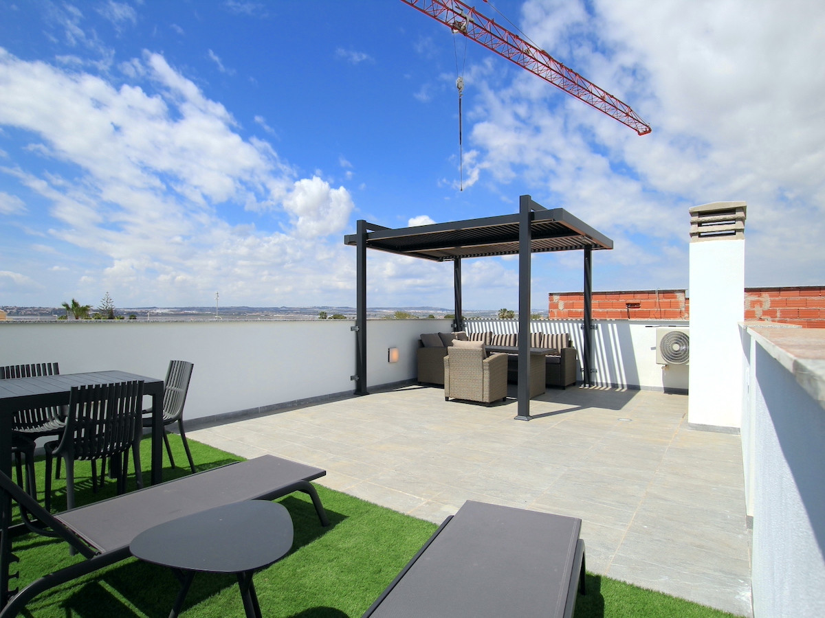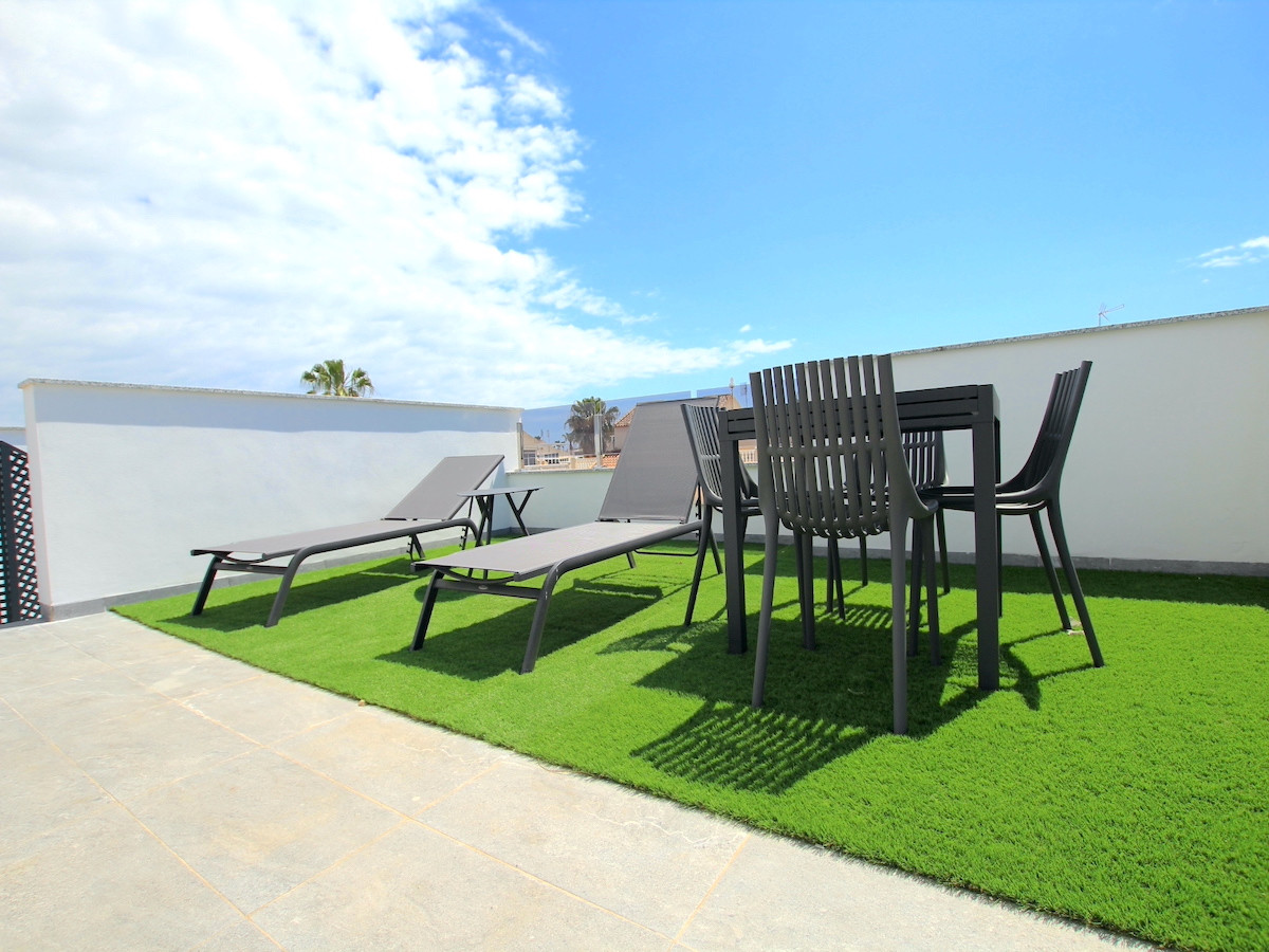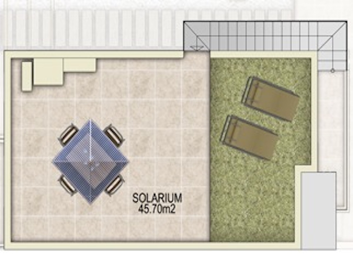 External stairs lead up to a magnificent sun-drenched solarium which offers plenty of sunbathing space. The owners have installed a top of the range pergola which provides some welcoming shade during the height of the summer.