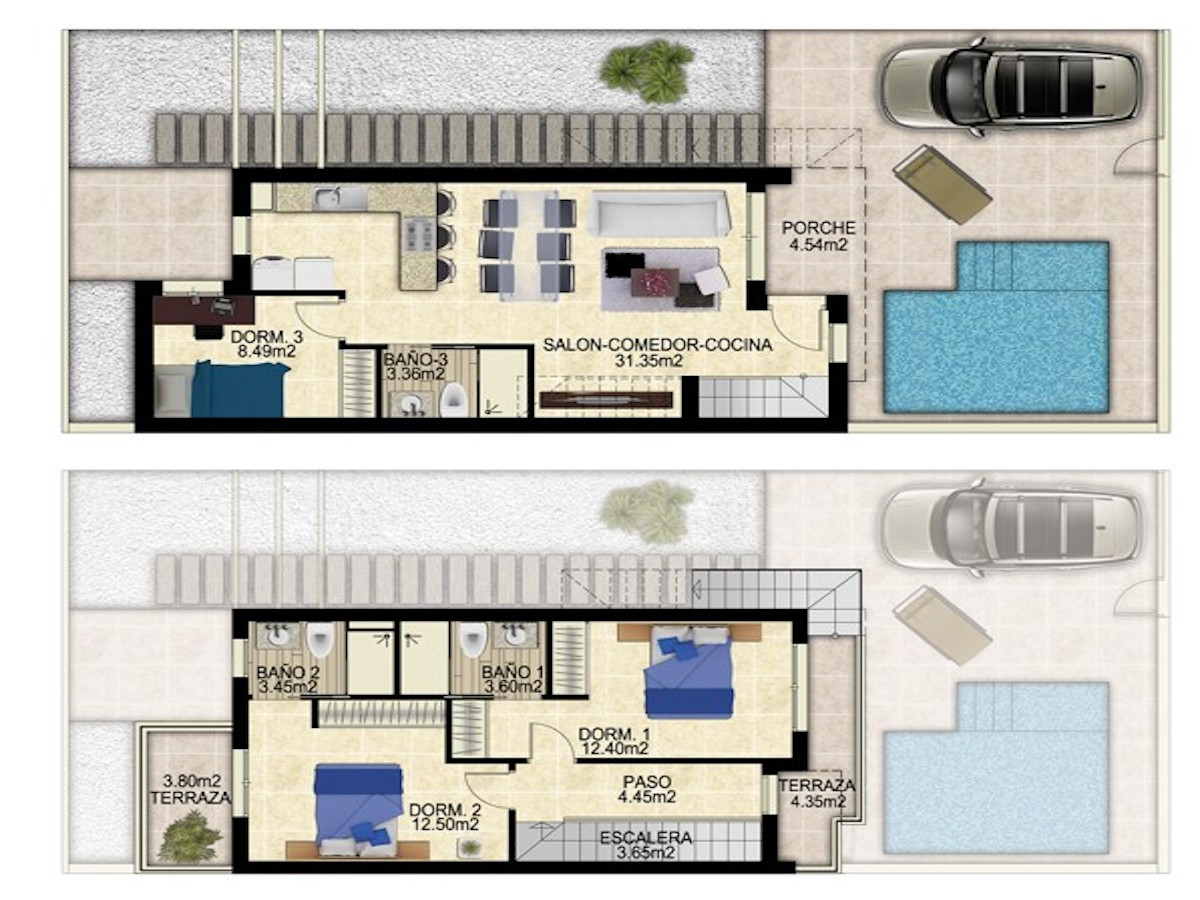 An elegant staircase leads up to the first floor where you have 2 double bedrooms, both of which benefit from plenty of built-in wardrobes, their own en-suite bathrooms and even their own sun terraces!