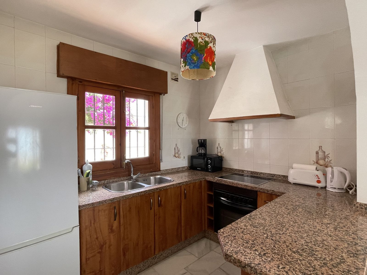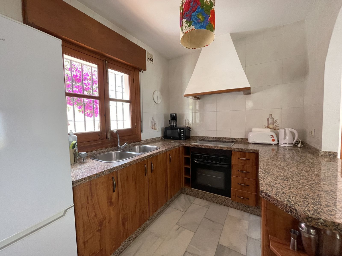 Inside, the home has classic Spanish charm, featuring a spacious lounge with a cosy fireplace, perfect for cooler evenings, and air conditioning for year-round comfort. The layout includes two generously sized bedrooms with fitted wardrobes and two bathrooms, including a master en-suite.