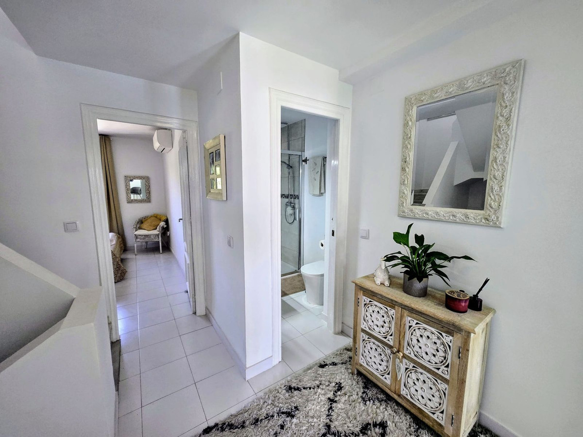 Set in peaceful Montemar, this beautifully kept 4-bedroom townhouse delivers easy Costa living with everything on your doorstep. The ground floor offers a generous semi open-plan kitchen—fully fitted with integrated appliances—flowing to a bright living/dining area. Glazed doors open to a private patio with direct access to the impeccably maintained communal gardens and swimming pool—ideal for relaxed weekends or effortless entertaining.