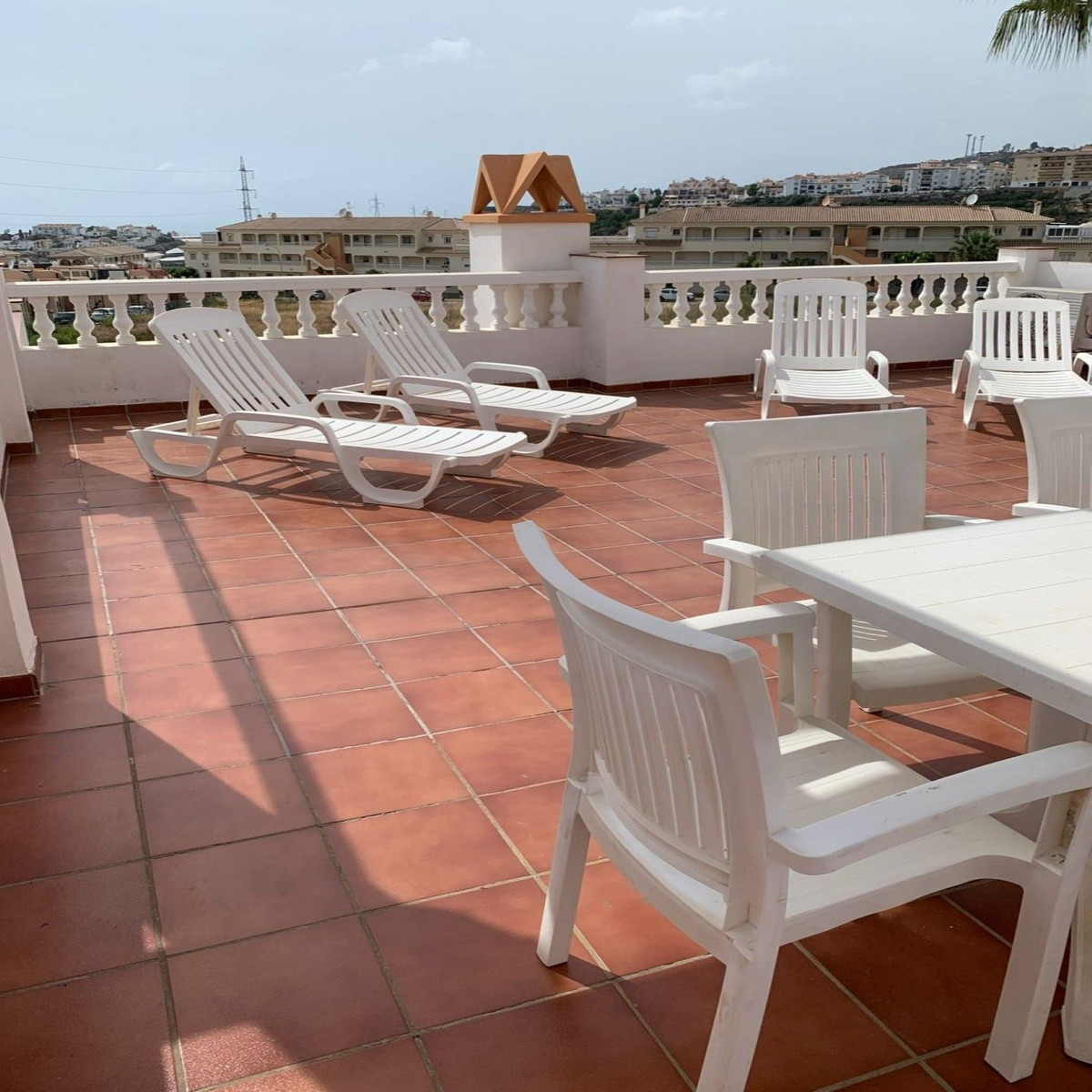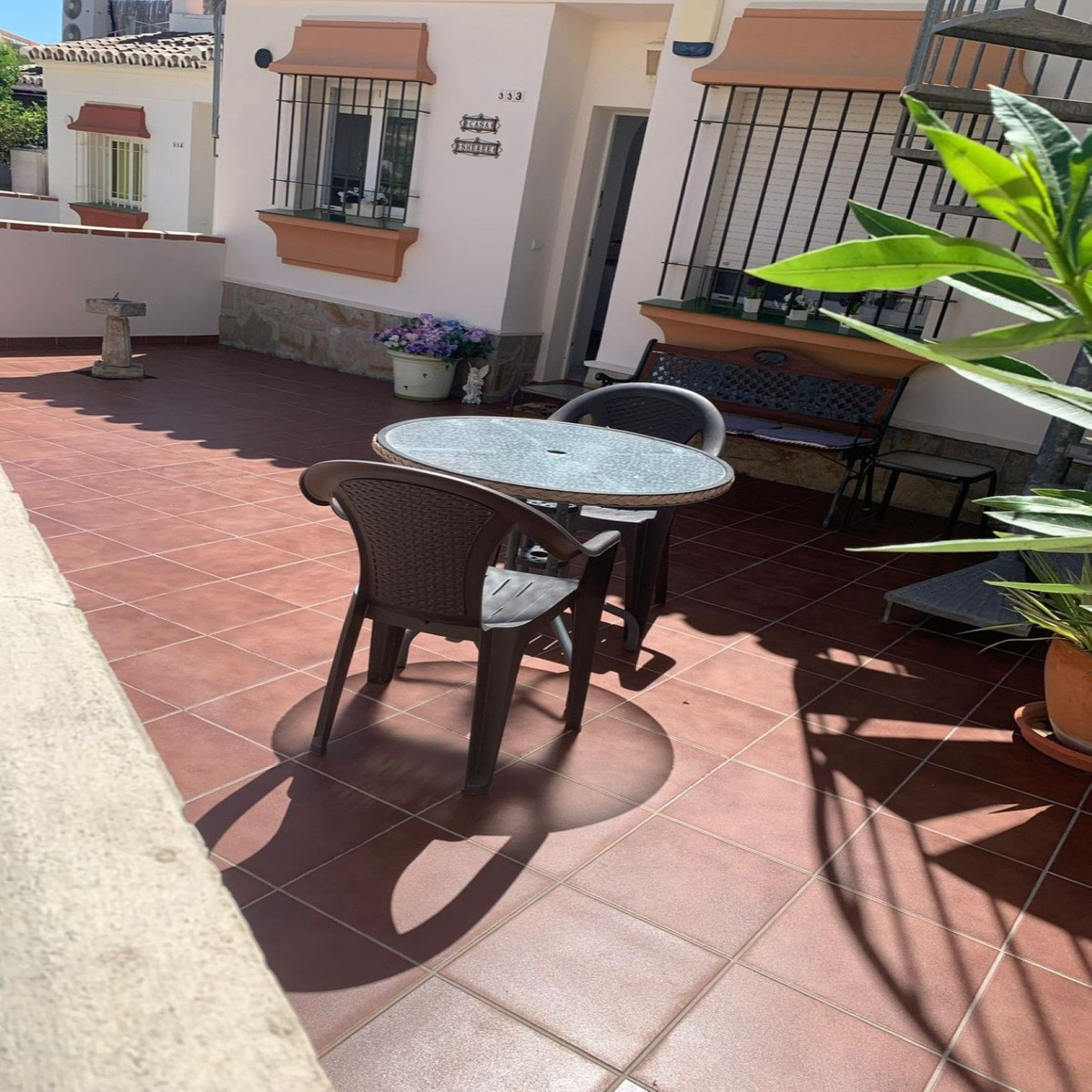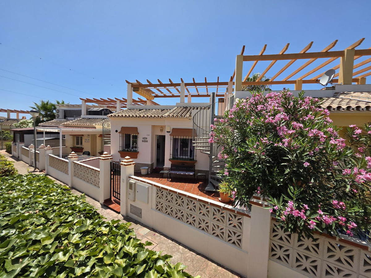 Great location of this townhouse in Torrox Costa, close to the beach and to all amenities. Also a public school is just a few minutes away. The townhouse offers a patio at the entrance, a large terrace at the back and a large roof top terrace with spectacular sea views along the coast. Overall you find two bedrooms, one full bathroom, an open kitchen with all electric appliances, a dining area and a large living room with access to the private terrace and communal garden. Facing south west with views along the coast! This townhouse is part of a community in Torrox Park which offers gardens all around and a large swimming pool area. About 30 minutes from the Málaga airport and city and only 10 minutes to the famous village of Nerja. The m2 are as followed, 70m2 living area, 16m2 terrace, 55m2 roof top terrace and 4m2 staircase!
