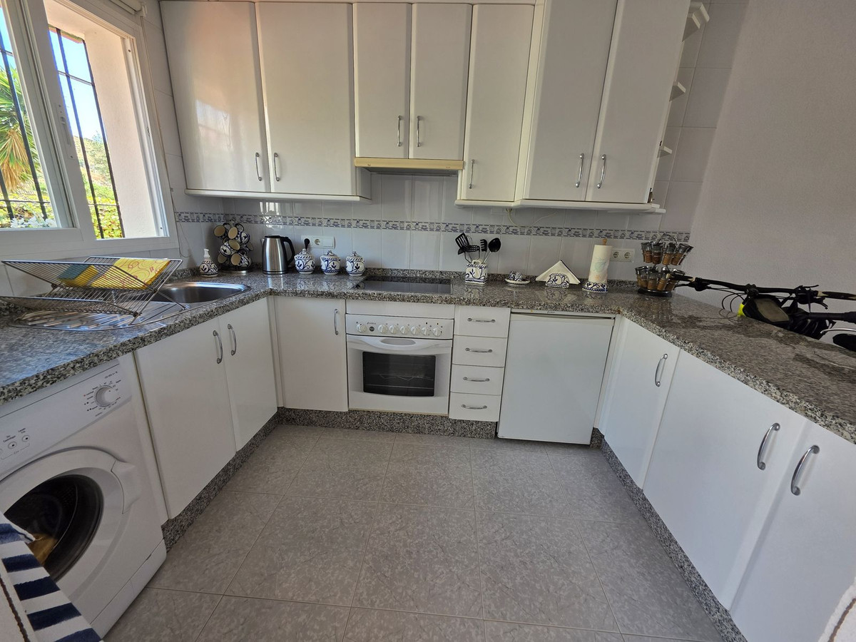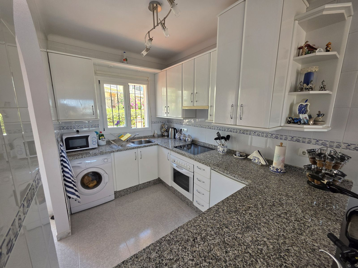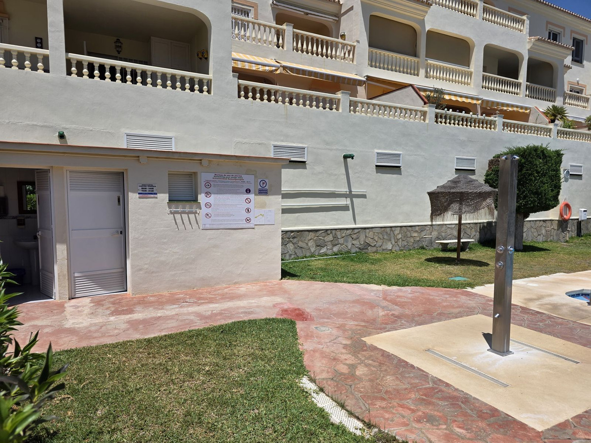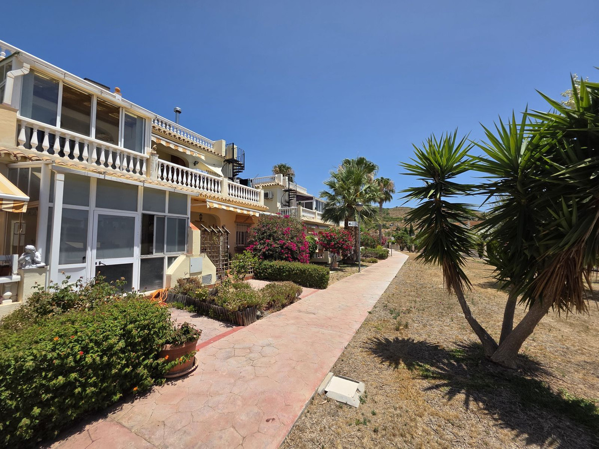 Great location of this townhouse in Torrox Costa, close to the beach and to all amenities. Also a public school is just a few minutes away. The townhouse offers a patio at the entrance, a large terrace at the back and a large roof top terrace with spectacular sea views along the coast. Overall you find two bedrooms, one full bathroom, an open kitchen with all electric appliances, a dining area and a large living room with access to the private terrace and communal garden. Facing south west with views along the coast! This townhouse is part of a community in Torrox Park which offers gardens all around and a large swimming pool area. About 30 minutes from the Málaga airport and city and only 10 minutes to the famous village of Nerja. The m2 are as followed, 70m2 living area, 16m2 terrace, 55m2 roof top terrace and 4m2 staircase!