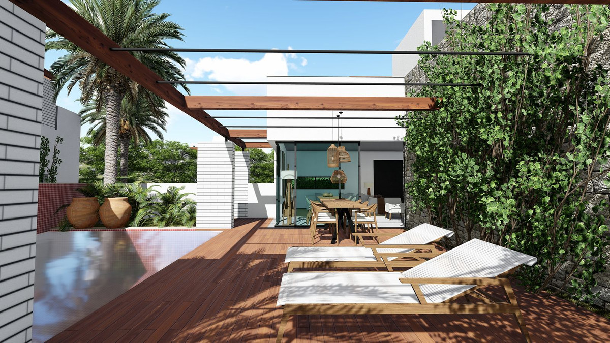 This property offers all that we want in our home. A space of peace and comfort that is distributed in an open-plan kitchen connected to a spacious living-dining room with views and direct access to the back porch and the private pool; 3 large double bedrooms**, equipped with built-in wardrobes and 2 modern bathrooms with contemporary finishes, one of them en-suite.