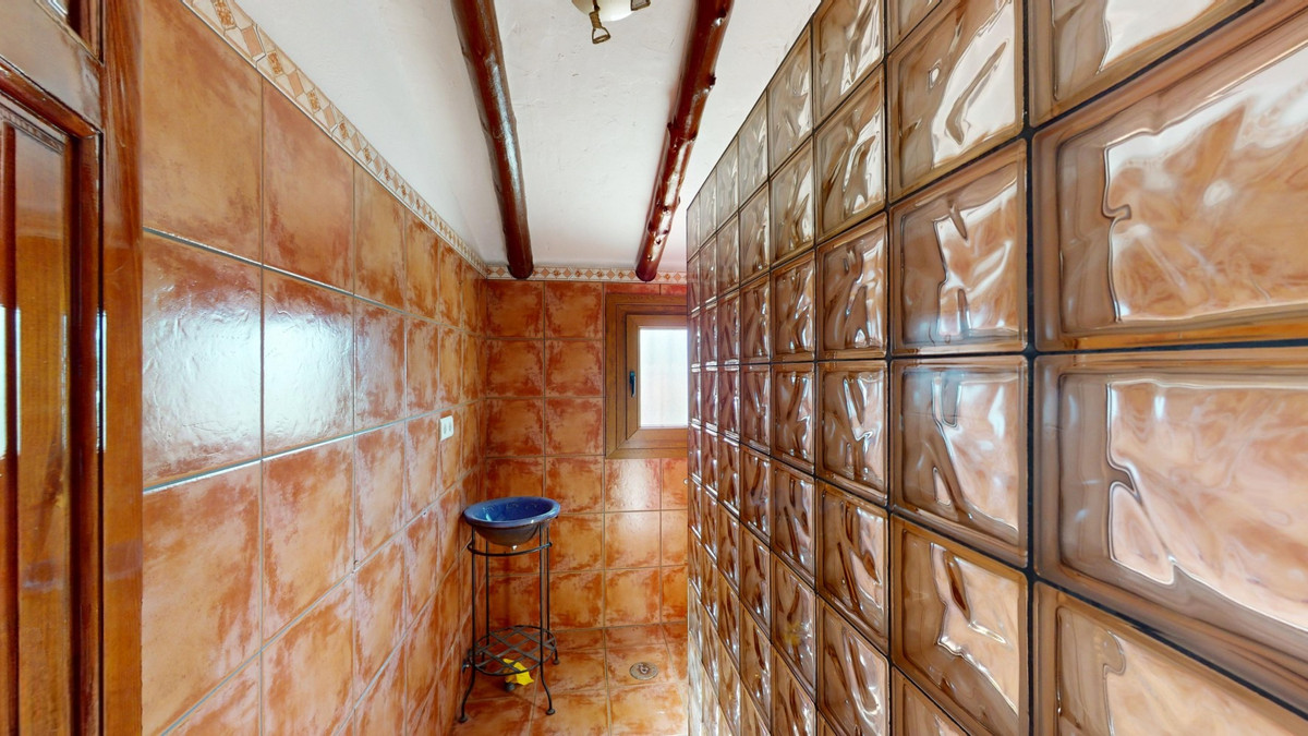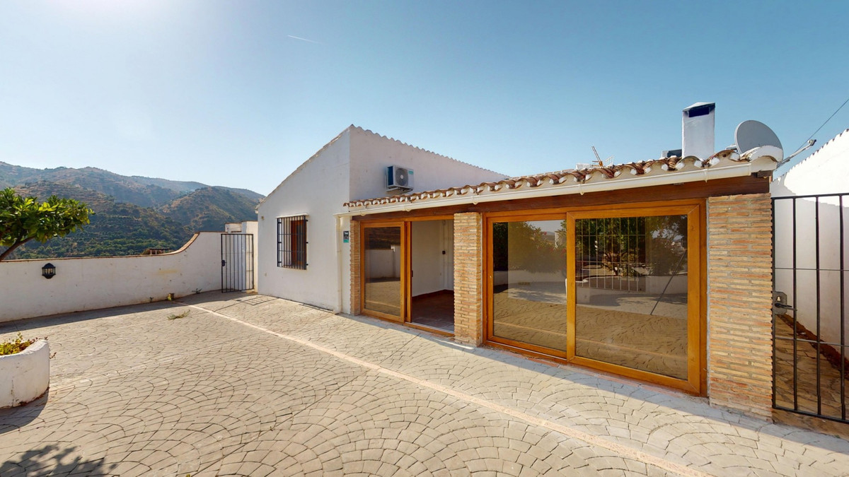 This delightful Spanish villa, located in Viñuela, Málaga, offers a perfect blend of traditional charm and modern comfort. The single-story property spans 167 m2 and features three bedrooms, including a spacious 13.9 m2 primary bedroom, and two bathrooms. Upon entering, you're greeted by the home's most striking feature: beautiful terracotta tile flooring that runs throughout, creating a cohesive and authentic Spanish ambiance. The living areas are characterized by their high, sloping ceilings with exposed wooden beams, adding rustic charm and visual interest to the space. The heart of the home is undoubtedly the living room, which boasts a magnificent stone fireplace as its centerpiece. Large windows and glass doors in this area, as well as in the bedrooms, allow ample natural light to flood the interiors while offering picturesque views of the surrounding landscape. The kitchen presents a harmonious blend of traditional and contemporary design. Modern appliances and sleek cabinetry are juxtaposed against the rustic ceiling beams, creating a functional yet aesthetically pleasing culinary space. The bathrooms, while not extensively detailed in the images, appear to have been updated with modern fixtures. Storage is thoughtfully incorporated throughout the home, with built-in wooden wardrobes in the bedrooms that maintain the overall rustic aesthetic. The property also features two patios, offering delightful outdoor spaces for relaxation and entertainment. A unique aspect of this villa is its attention to decorative details, such as the ornate tile borders in the hallways and bathrooms, which add a touch of traditional Spanish flair to the otherwise simple and elegant interiors. Outside, the villa boasts a beautiful pool and a charming outdoor area perfect for enjoying the  Mediterranean climate. Overall, this Málaga villa offers a warm, inviting atmosphere that beautifully marries traditional Spanish architectural elements with modern comforts, creating a truly special living space. We are pleased to be able to present this dream property to you soon, either personally or via virtual viewing. Because this world is unique - just like our Axarquía. In Andalusia. On the Costa del Sol. Here, on the sunny side of life...